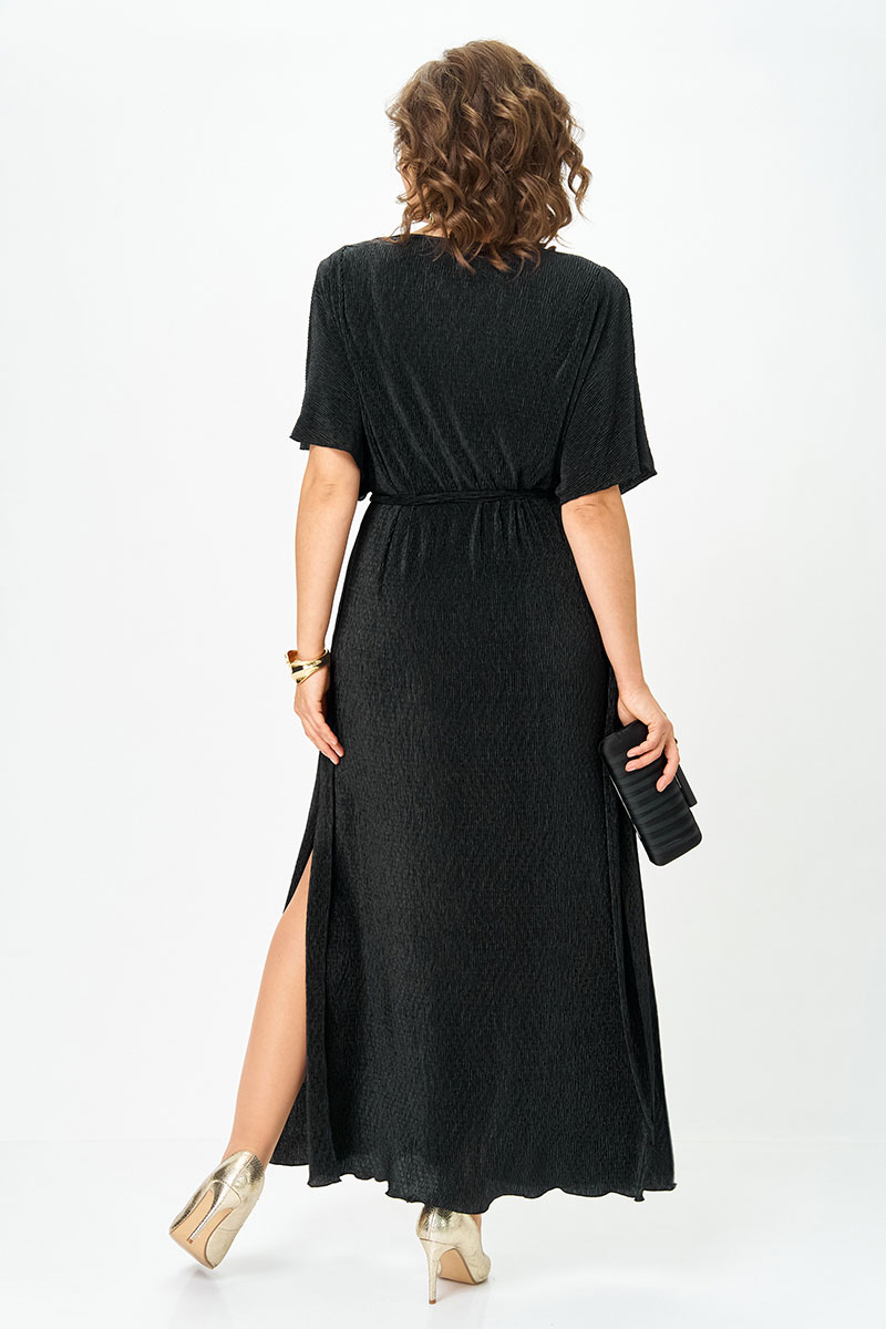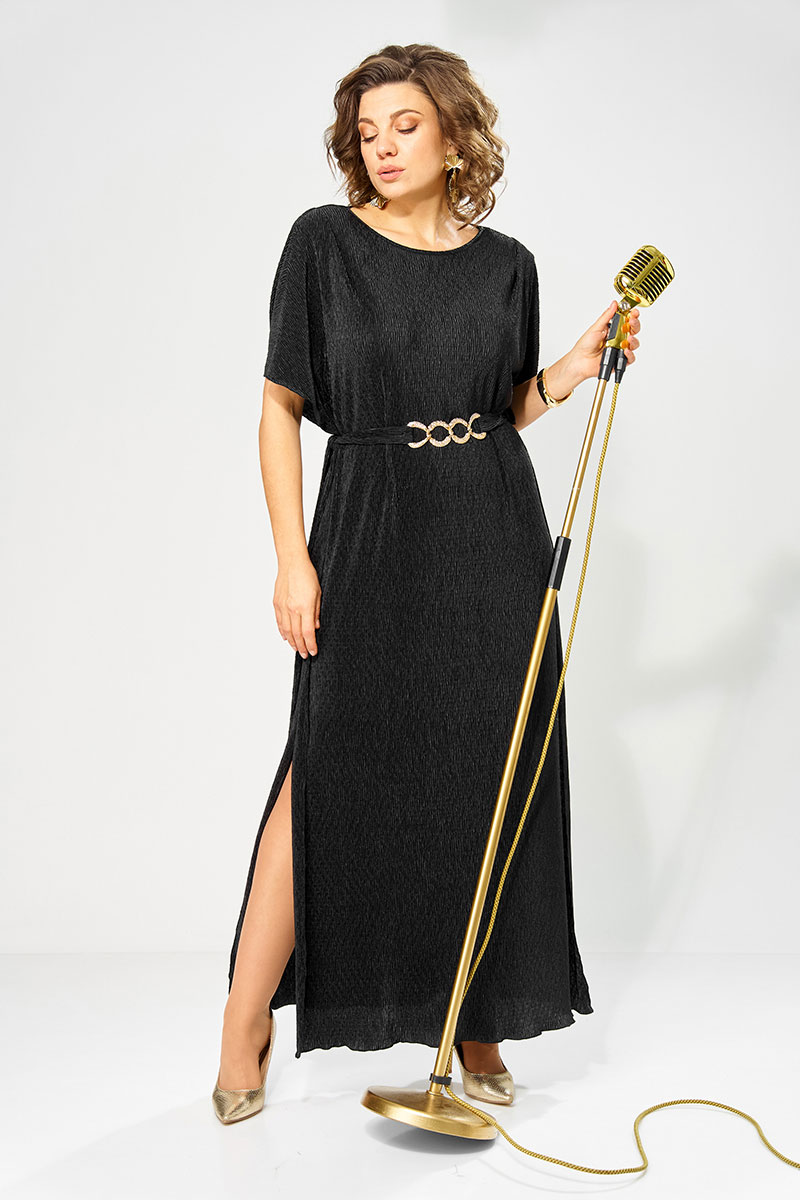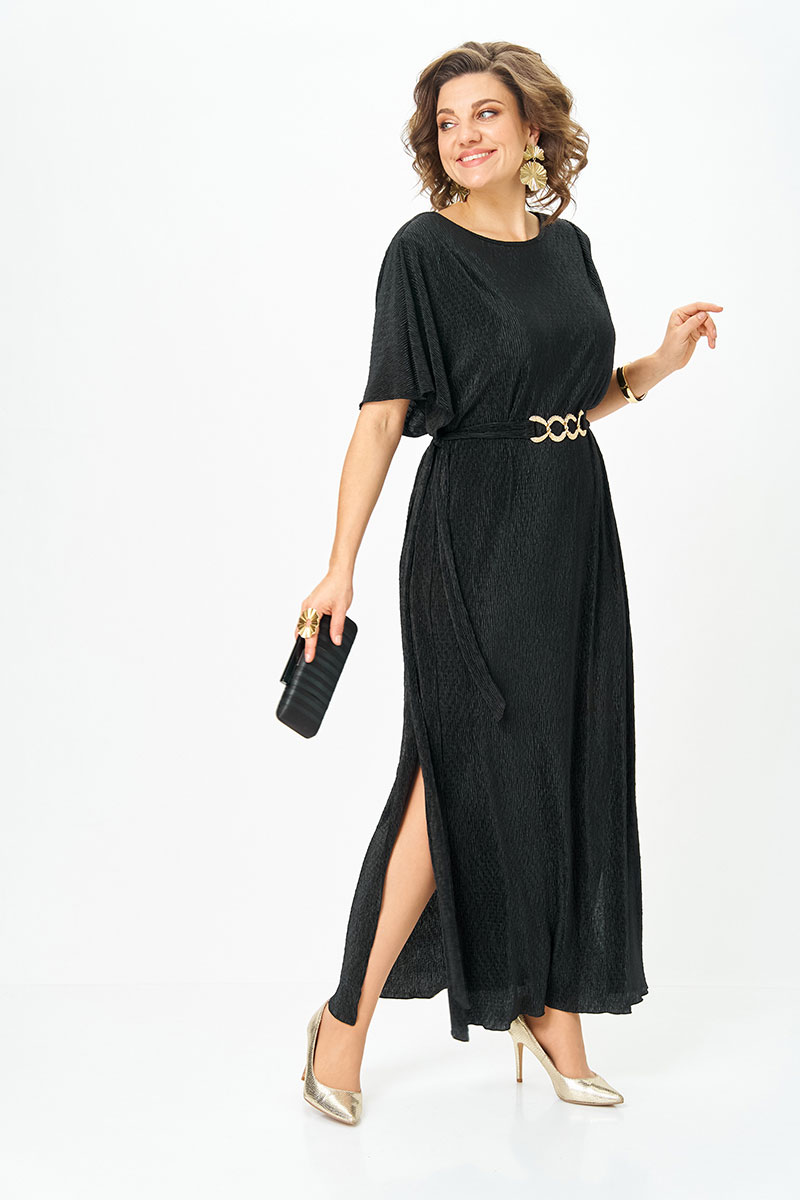 крое с двумя боковыми швами, которые формируют идеальный силуэт без лишних деталей. Пояс с декоративной пряжкой подчёркивает талию, а разрезы по бокам добавляют легкости и