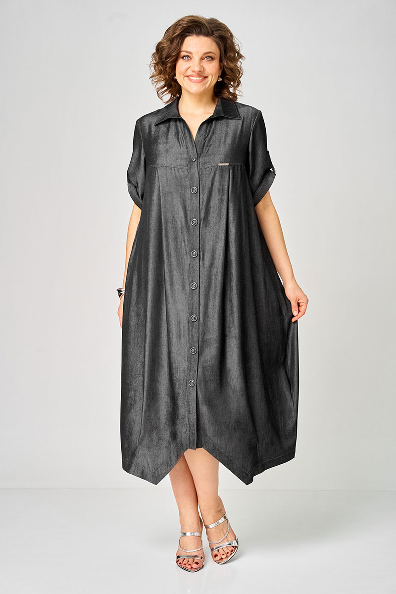Это то самое платье-рубашка, которое собирает образ за минуту. Свободный крой мягко скрывает нюансы фигуры, не подчёркивая лишнего. Защипы по низу формируют аккуратный силуэт, а