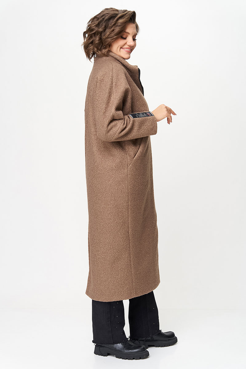 нашивкой добавляет современный акцент. Длина миди визуально вытягивает силуэт, делая образ стройнее. Лёгкая конструкция без подкладки позволяет носить пальто каждый день — от офисных