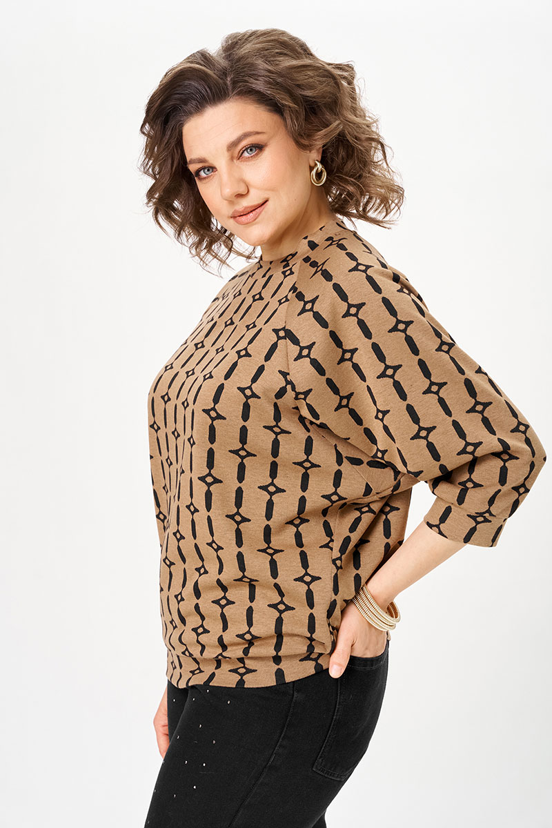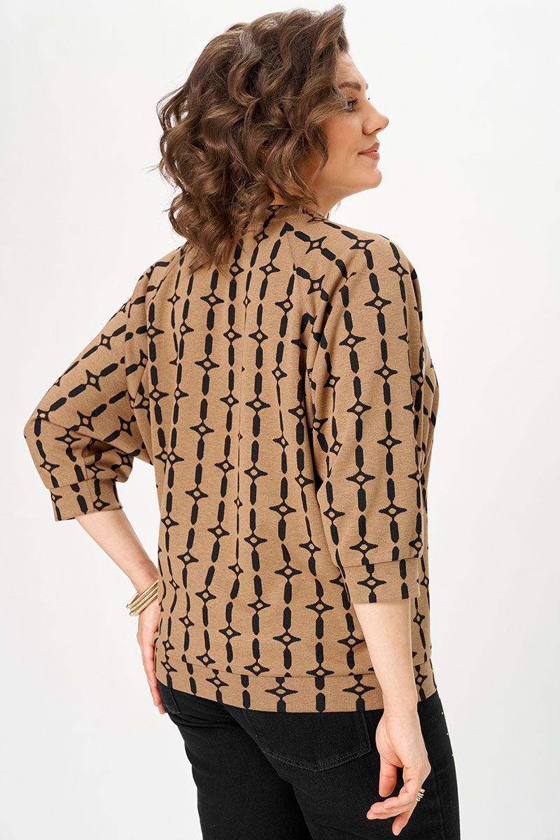 Рукав реглан — важная деталь: мягко формирует плечевую линию, не утяжеляет верх и делает посадку более деликатной. Свободный силуэт не обтягивает, но при этом не выглядит