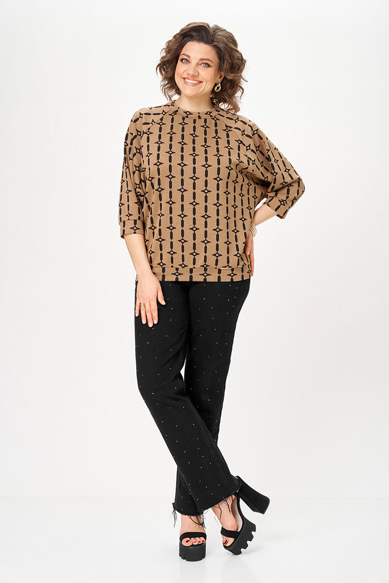 Трикотаж средней плотности мягкий, пластичный и комфортный к телу. Он держит форму, не просвечивает и не теряет аккуратный вид в течение дня.