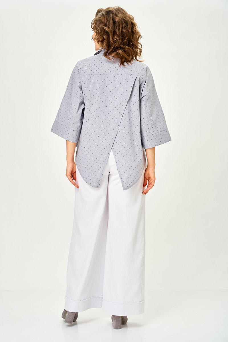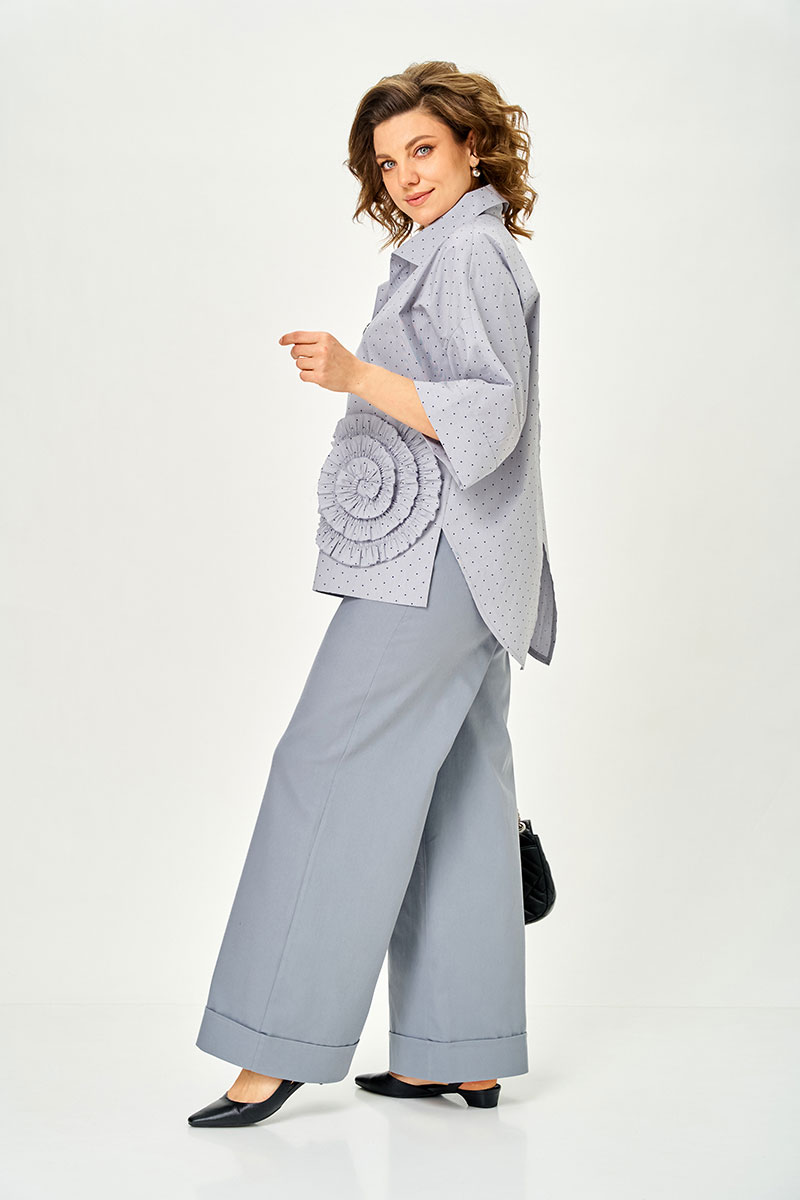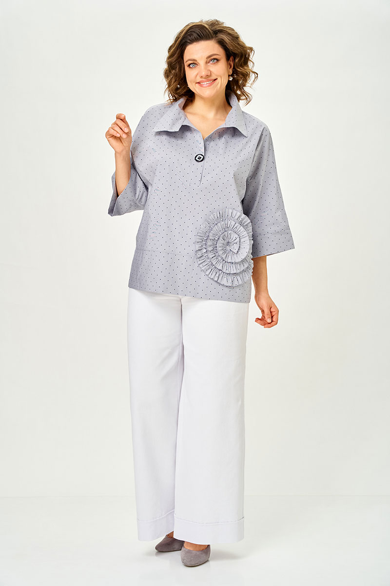Особое внимание привлекает изящная декоративная отделка — тонкий текстурный элемент, который придает блузке характер и стильную нотку.