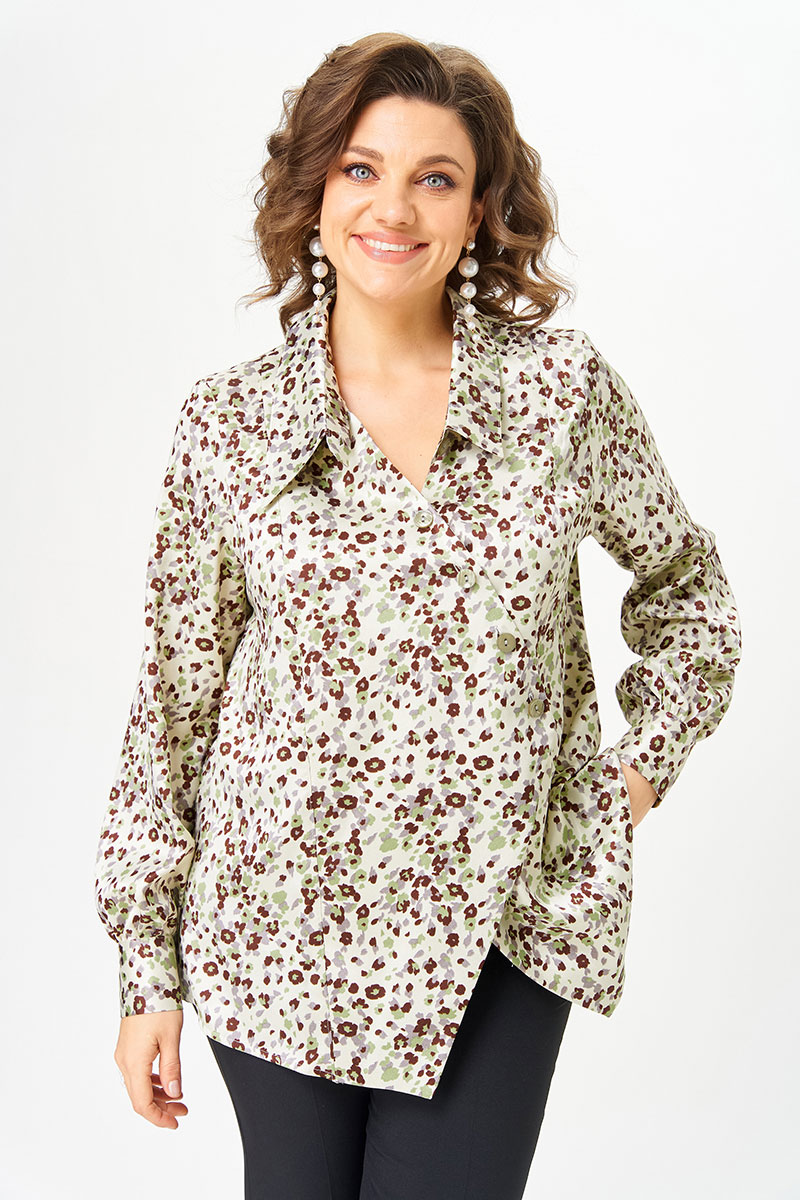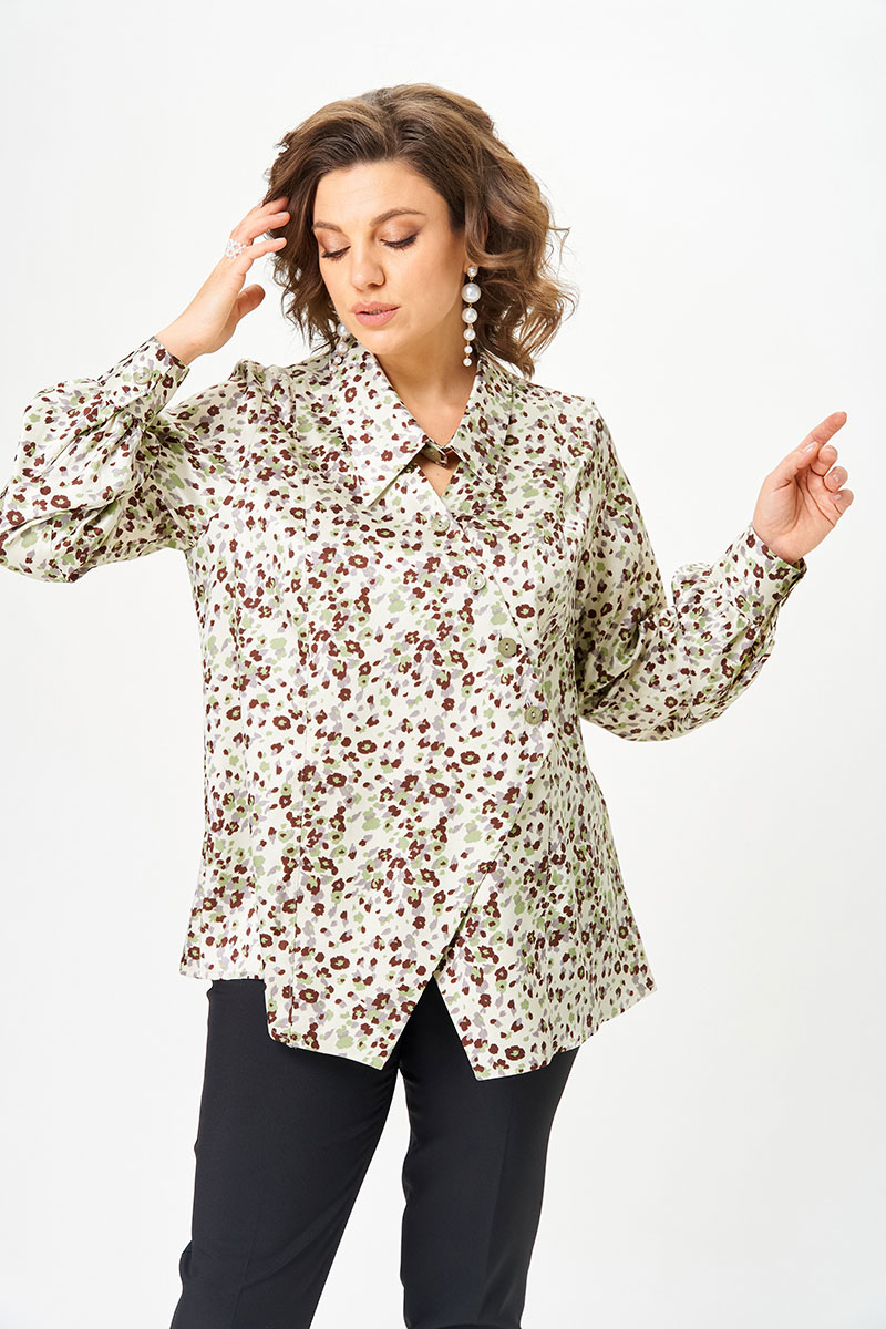 Блузка выполнена в нежном цвете, подчеркивающем элегантность и изысканность вашего образа. Модель в фирменном стиле Michel Chic сочетает комфорт хлопковой ткани и изысканность