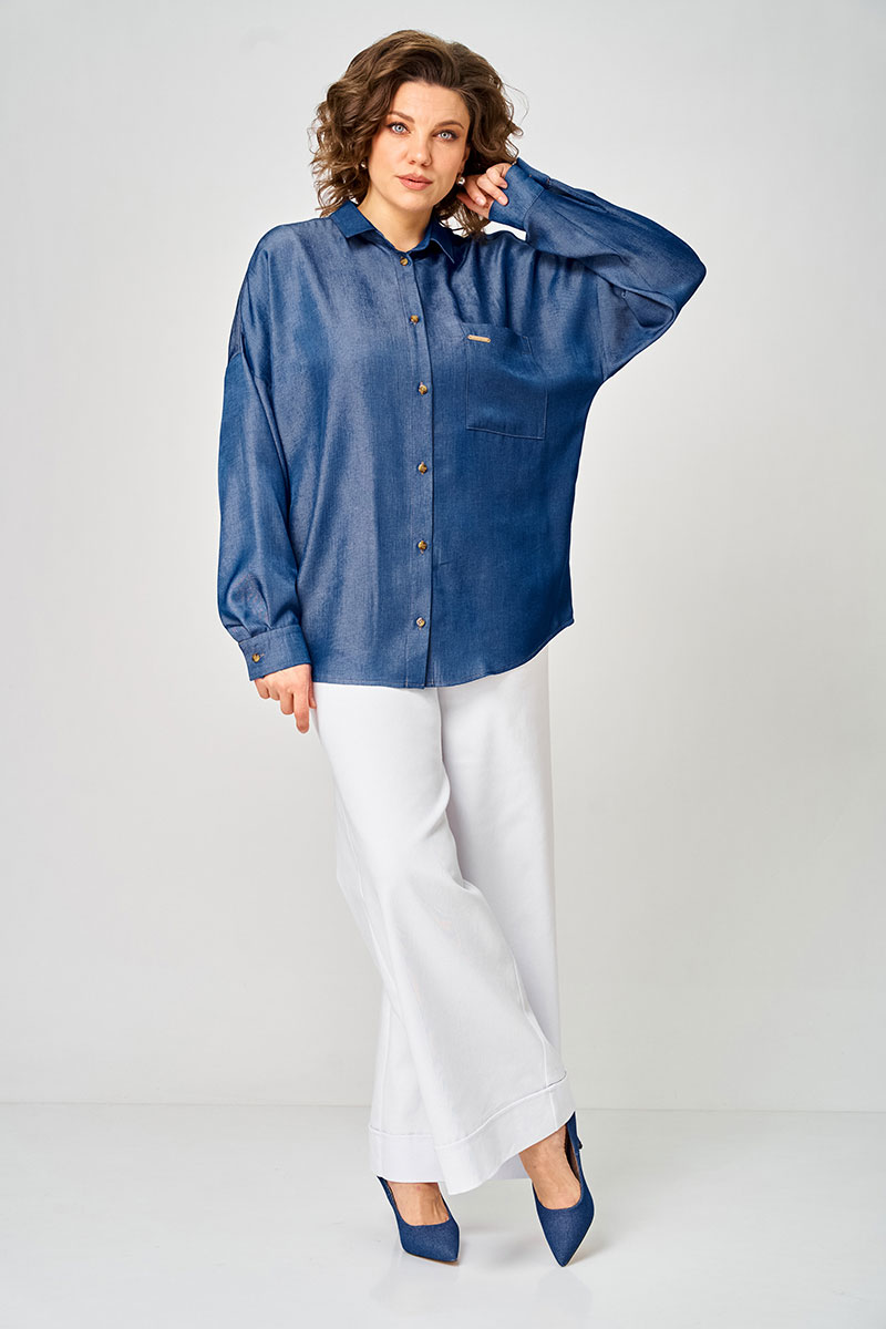 Рубашка женская джинсовая из вискозы (лёгкий деним) с характерным джинсовым плетением и мягким благородным блеском. Ткань струится, дышит и комфортна к телу, выглядит аккуратно весь