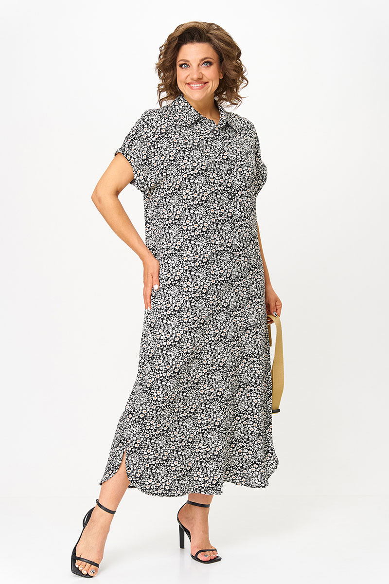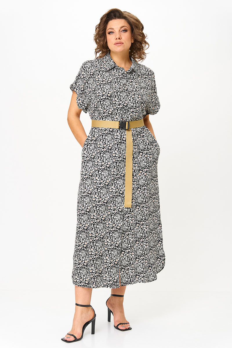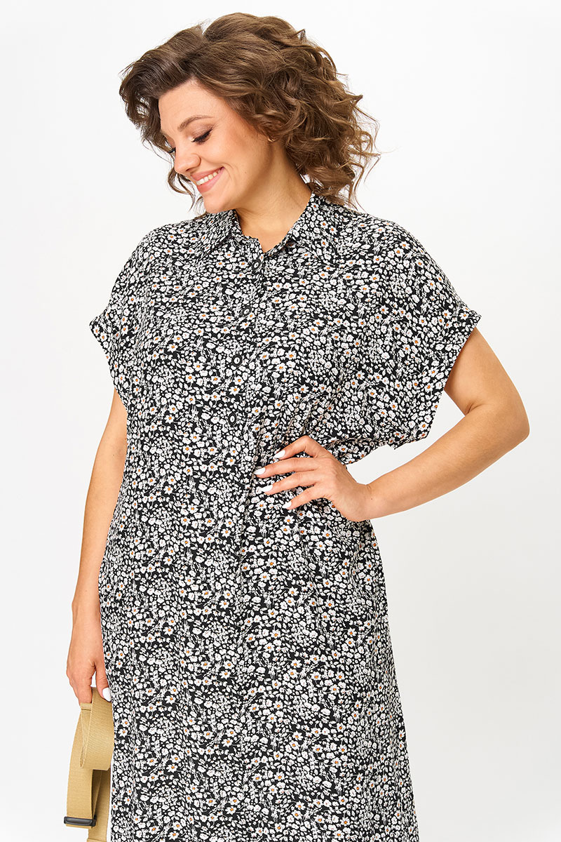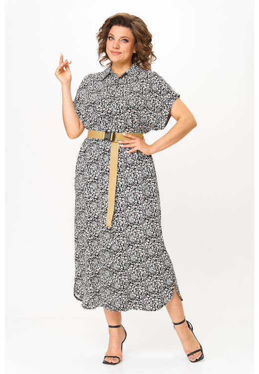 Платье рубашечного типа, свободного кроя - выполнено из мягкой приятной на ощупь ткани. Универсальность кроя и легкая ткань сделают его любимым изделием Вашего гардероба в летний сезон. По переду планка-застёжка на пуговицах к низу с разрезом, с боковыми разрезами, спинка удлиненная. Короткий цельнокроеный рукав приспущенный с отложенной манжетой. Благодаря встречной складке на спинке платье приобретает легкое и элегантное клешение. Украшением платья служит декоративный принт. По желанию фиксируется поясом, который идет в комплекте. Это универсальное платье отлично подойдет для летних прогулок, встреч или повседневных образов. Добавьте его в корзину и создавайте стильные образы уже сегодня!
