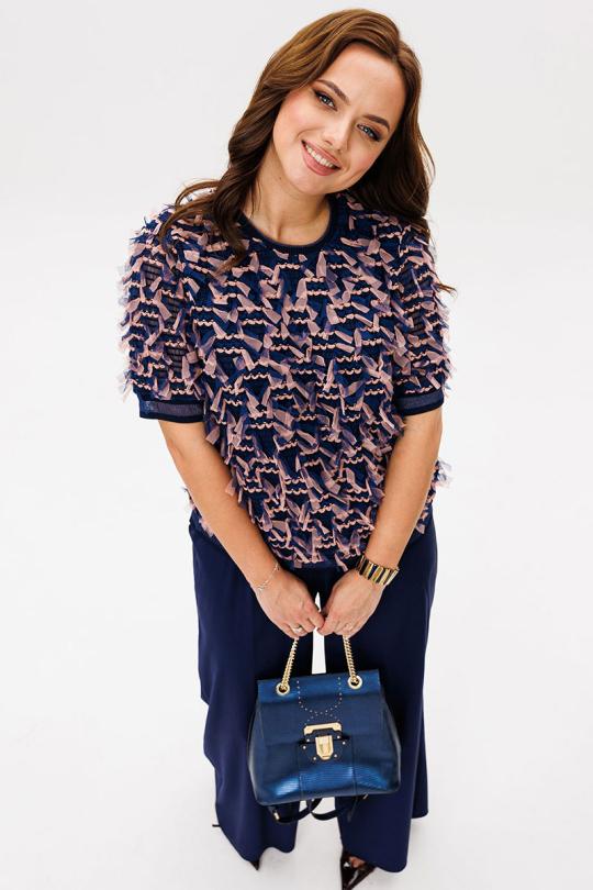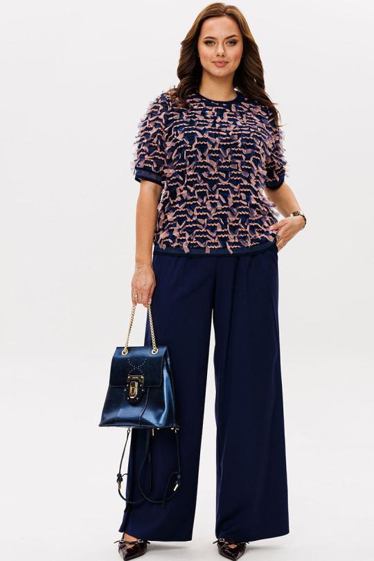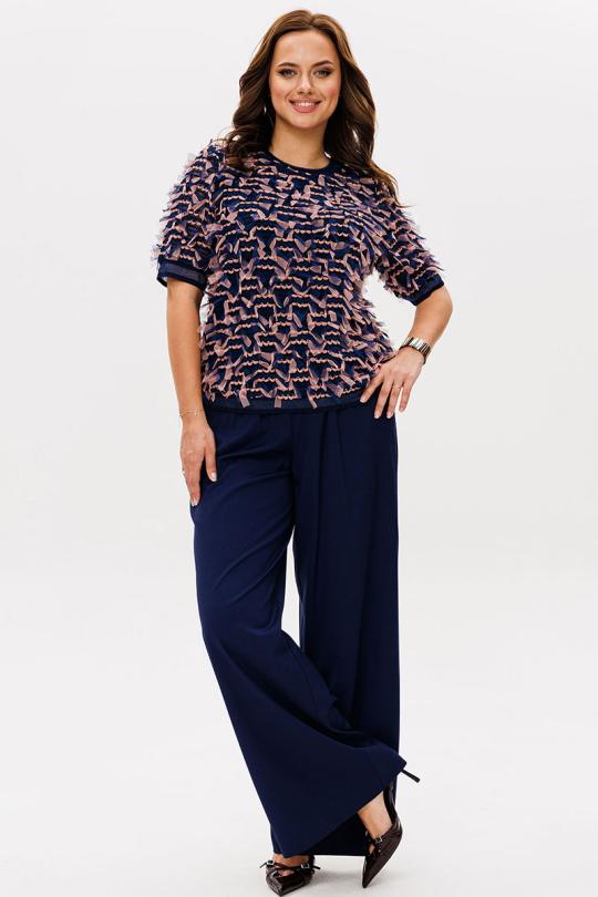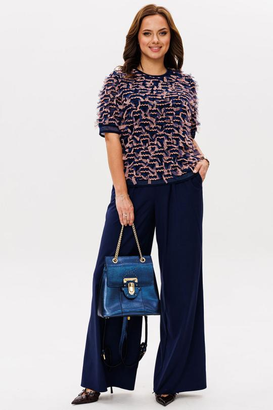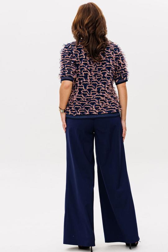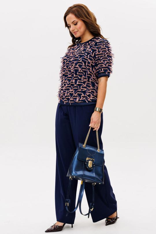 Комплект женский, из разных по фактуре тканей, состоящий из джемпера на трикотажной подкладке и брюк палаццо.