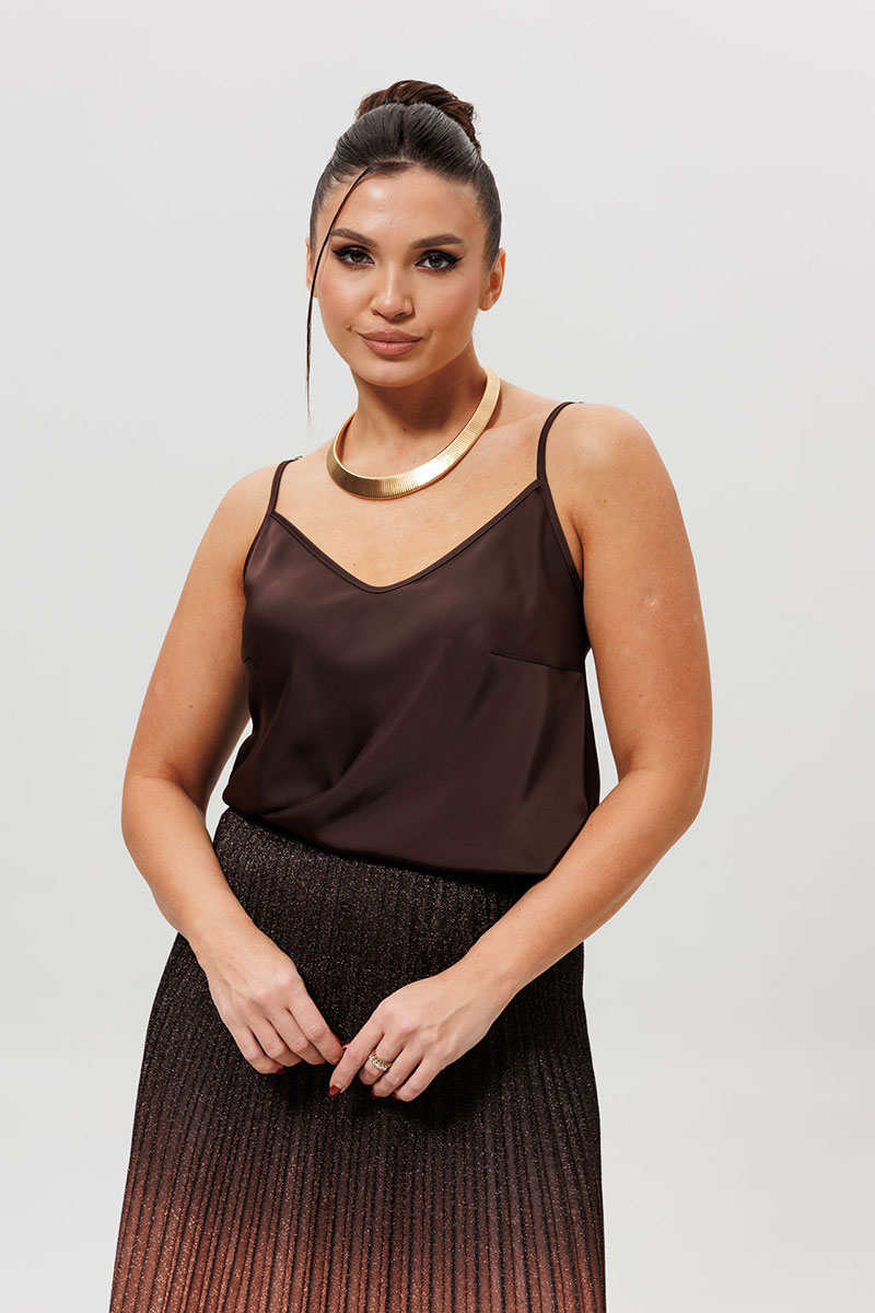 Элегантный атласный топ — идеальный выбор для тех, кто ценит роскошь и комфорт в повседневной жизни. Модель выполнена из гладкого атласа, который придает образу блеск и шик. V-образный вырез подчеркивает линию шеи и создает эффект стройности, а тонкие регулируемые бретели обеспечивают удобную посадку. Топ доступен в двух цветах: яркий красный и классический черный, что позволяет создавать разнообразные образы. Красный топ станет отличным выбором для вечерних мероприятий, добавляя образу дерзости и энергии, а черный — идеален для офиса или деловых встреч, создавая строгий и элегантный образ. Гладкий атлас обеспечивает приятное ощущение на коже и добавляет образу роскоши. V-образный вырез и тонкие бретели делают топ модным и привлекательным. Подходит как для вечерних мероприятий, так и для повседневной носки. Регулируемые бретели позволяют адаптировать топ под разную фигуру. Комбинируйте с юбкой-миди и высокими каблуками для создания эффектного образа. Наденьте с классическими брюками и туфлями на каблуке для делового стиля. Создайте расслабленный лук с джинсами и кроссовками. Топ отлично комбинируется с кружевной блузкой 1160бл, с белым жакетом 1048ж.