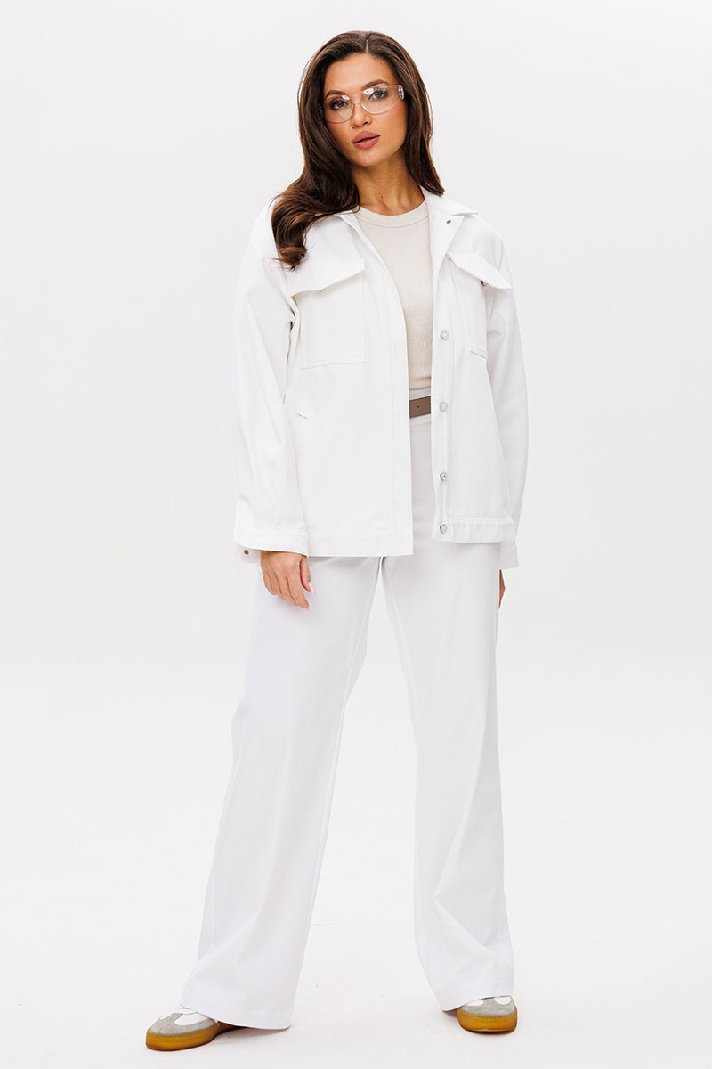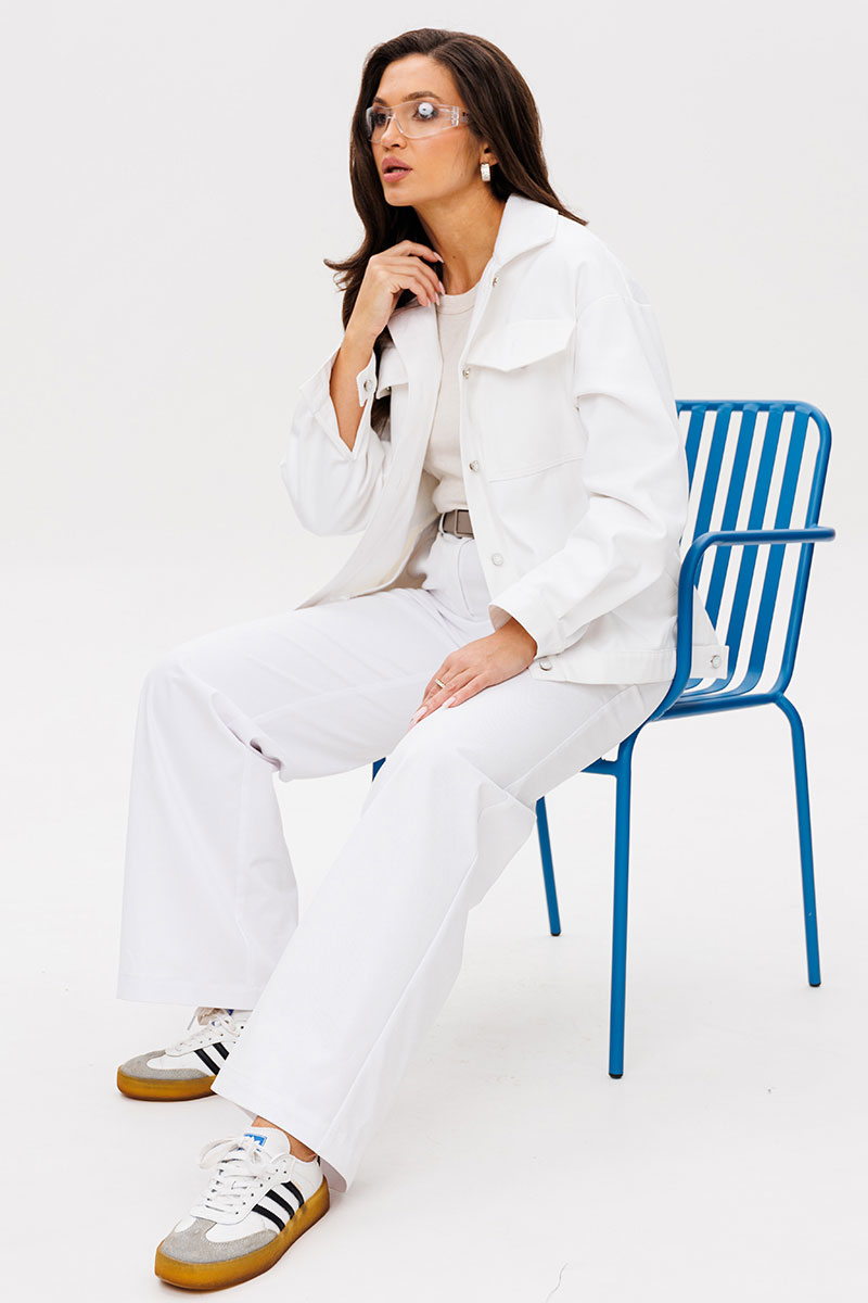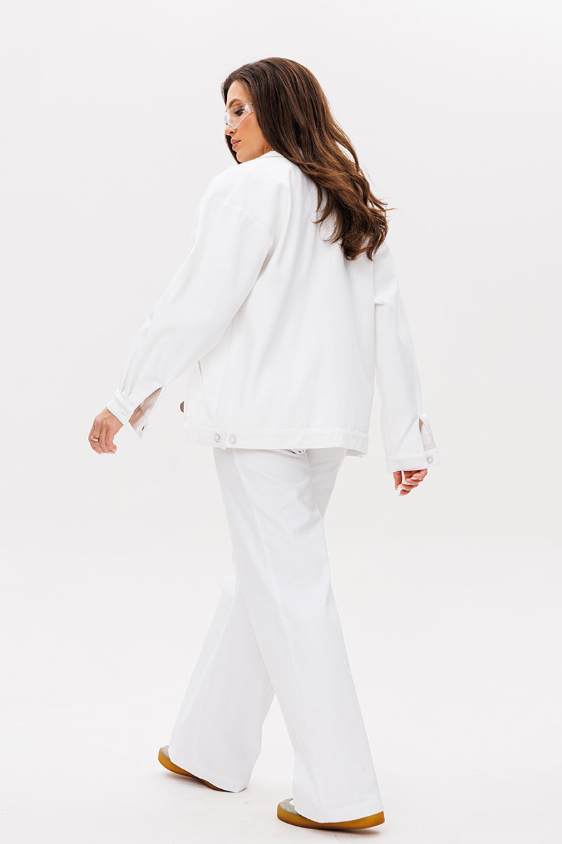 Костюм женский свободного силуэта состоит из жакета и брюк. Легкий белоснежный джинс.