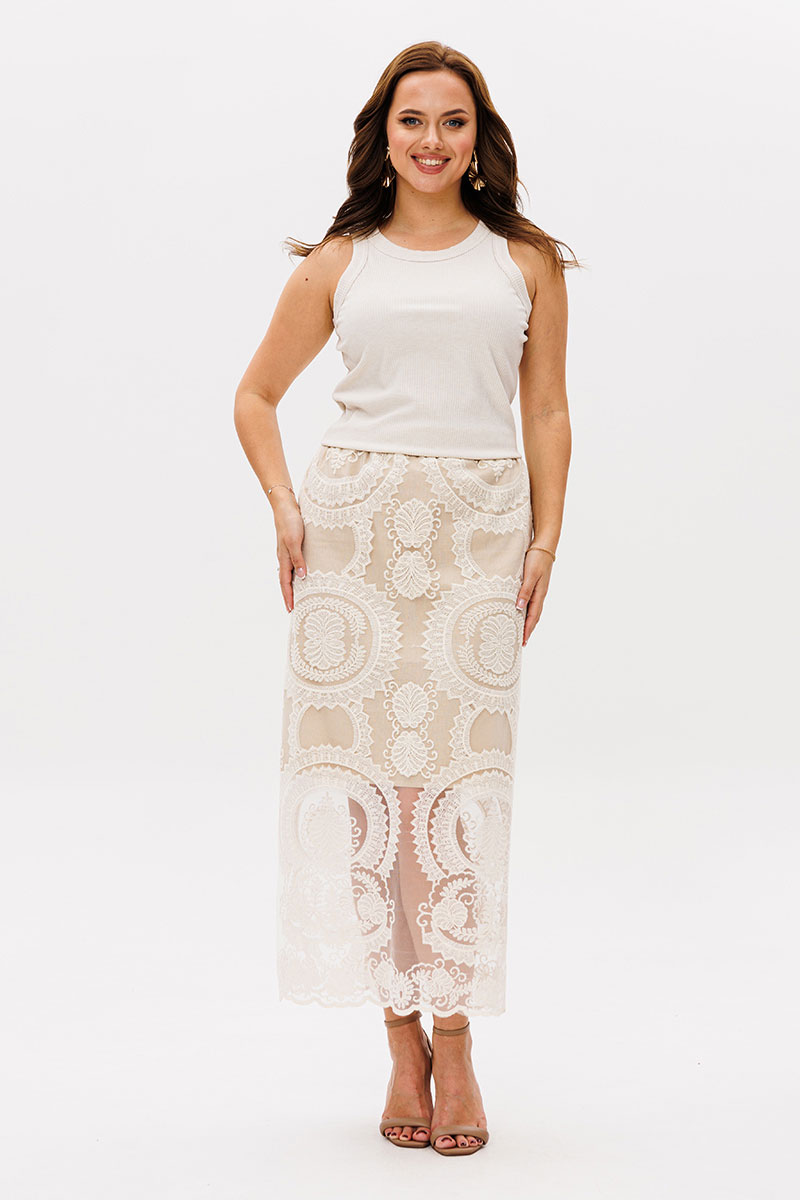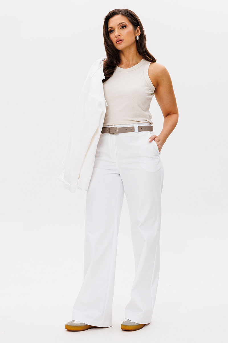 Блуза полуприлегающего силуэта без рукавов. Горловина и пройма обработана на специальном оборудовании притачной планкой.