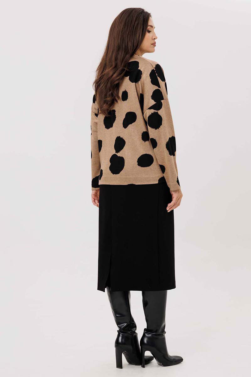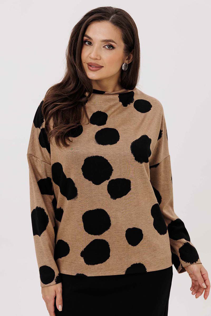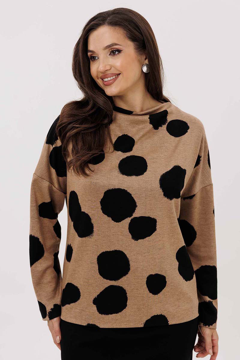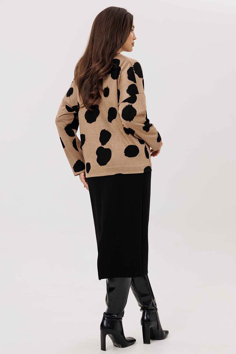 Джемпер прямого силуэта со спущенным втачным рукавом. Горловина - цельнокроенная стойка.