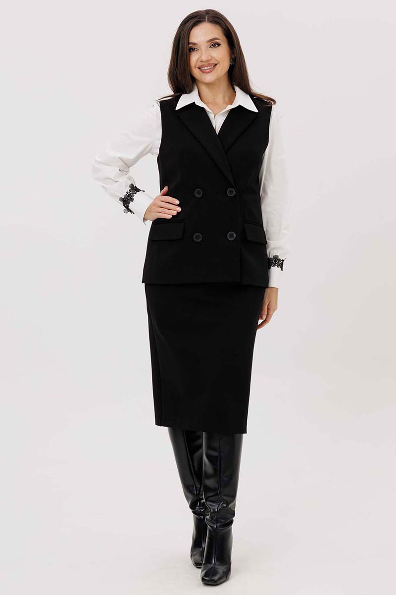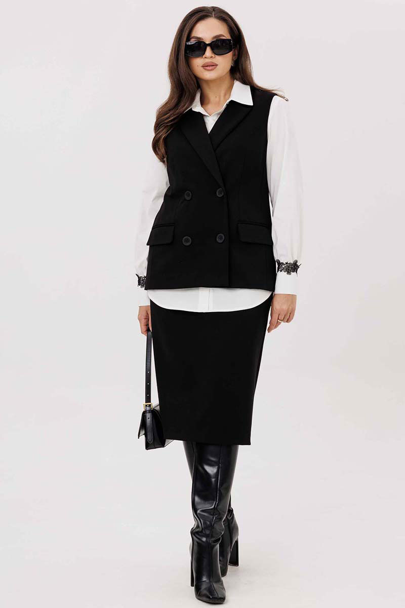 Идеальная жилетка для современной деловой женщины, которая ценит стиль и комфорт. Эта модель выполнена из качественной костюмной ткани, что обеспечивает отличную посадку и