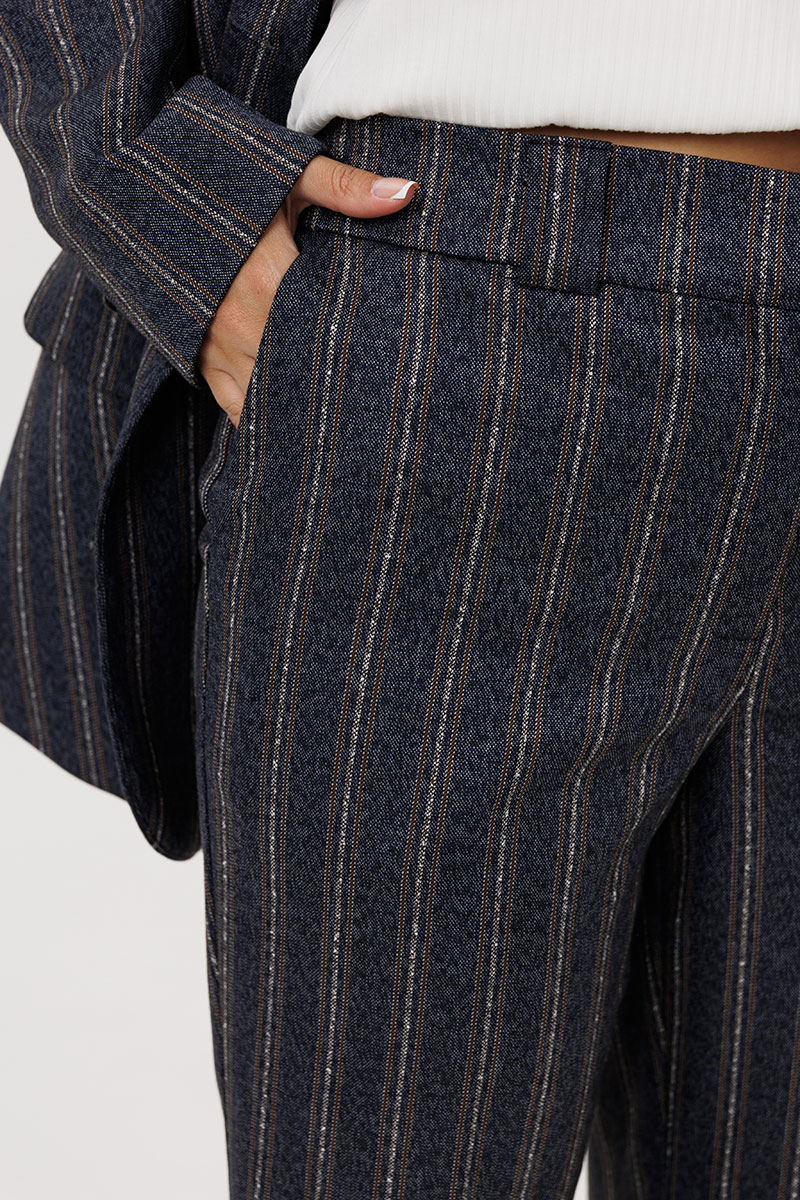 Брюки женские с высокой посадкой, прямые, на притачном поясе, по спинке по бокам продета эластичная тесьма - резинка. По переду застёжка молния с гульфиком и откоском. Брюки с боковыми карманами . На задних половинках брюк имитация прорезных карманов с листочкой.