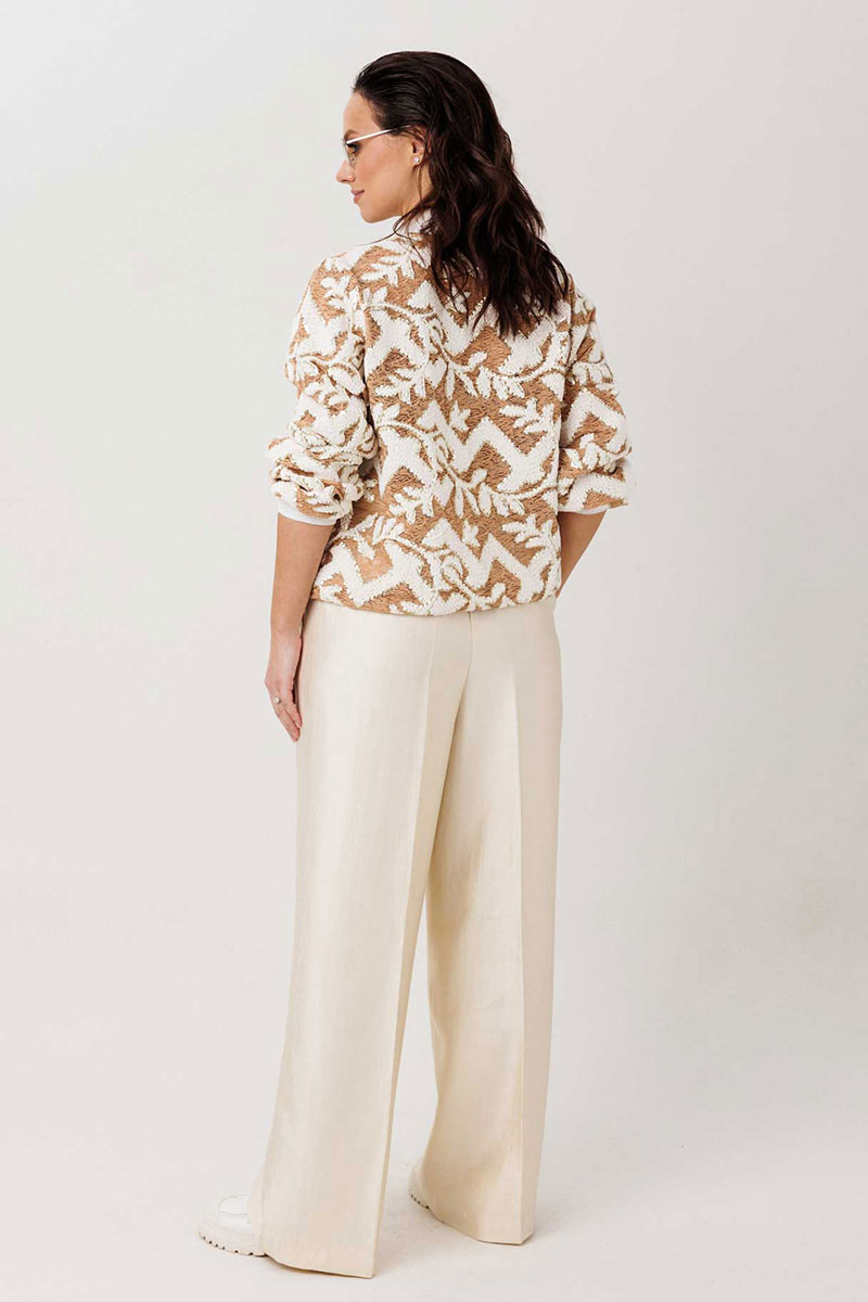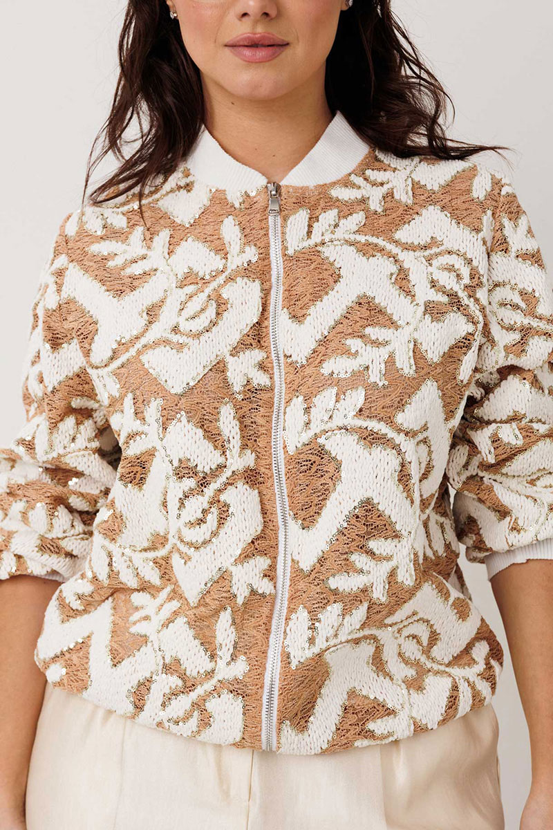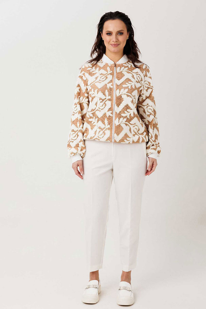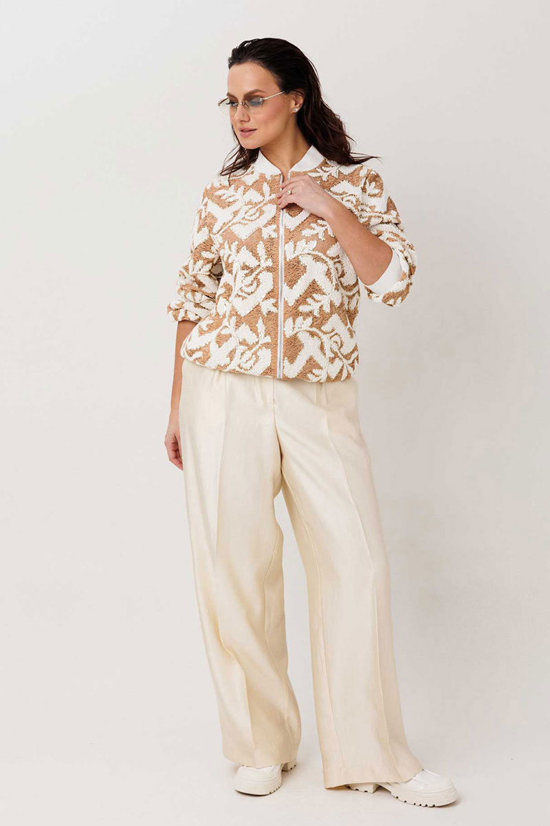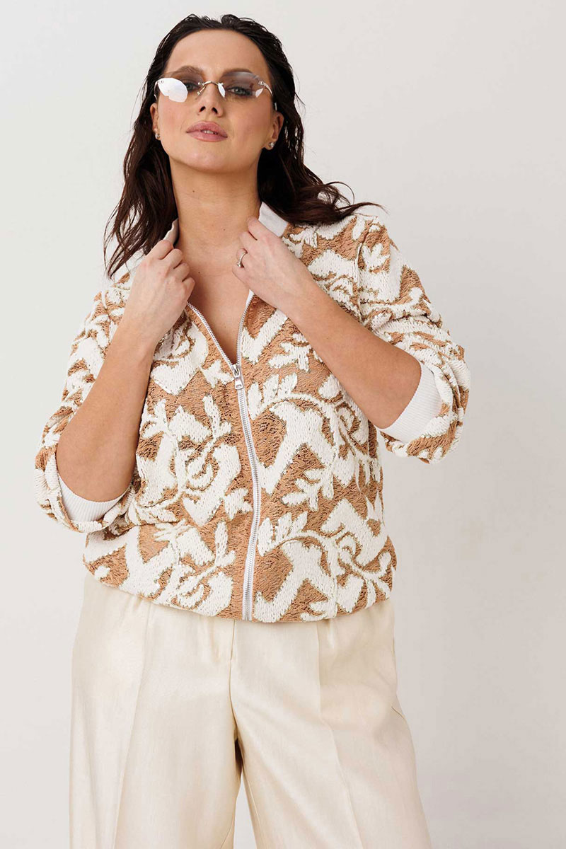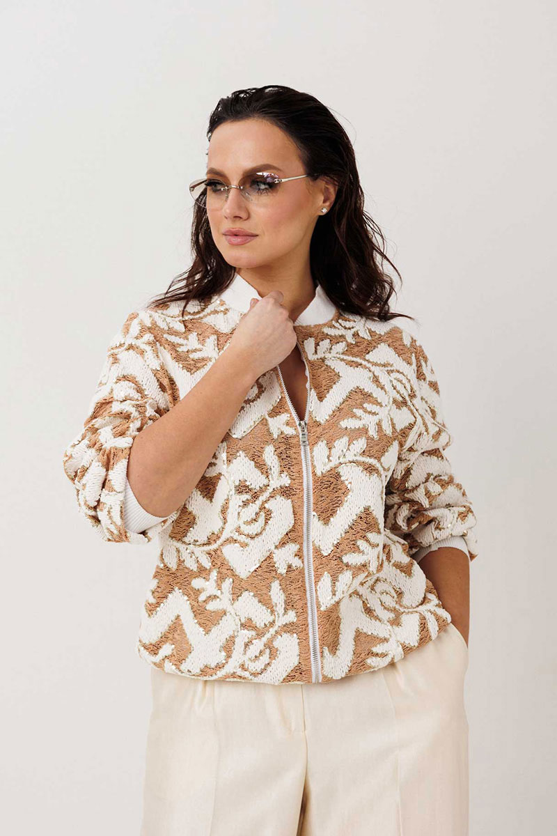 Жакет-бомбер с выразительной фактурой без подкладки. Стильный бомбер, который легко становится акцентом в образе. Объёмная фактурная ткань с контрастным узором создаёт эффект глубины