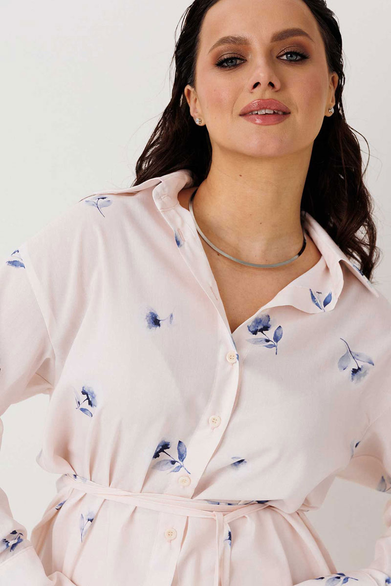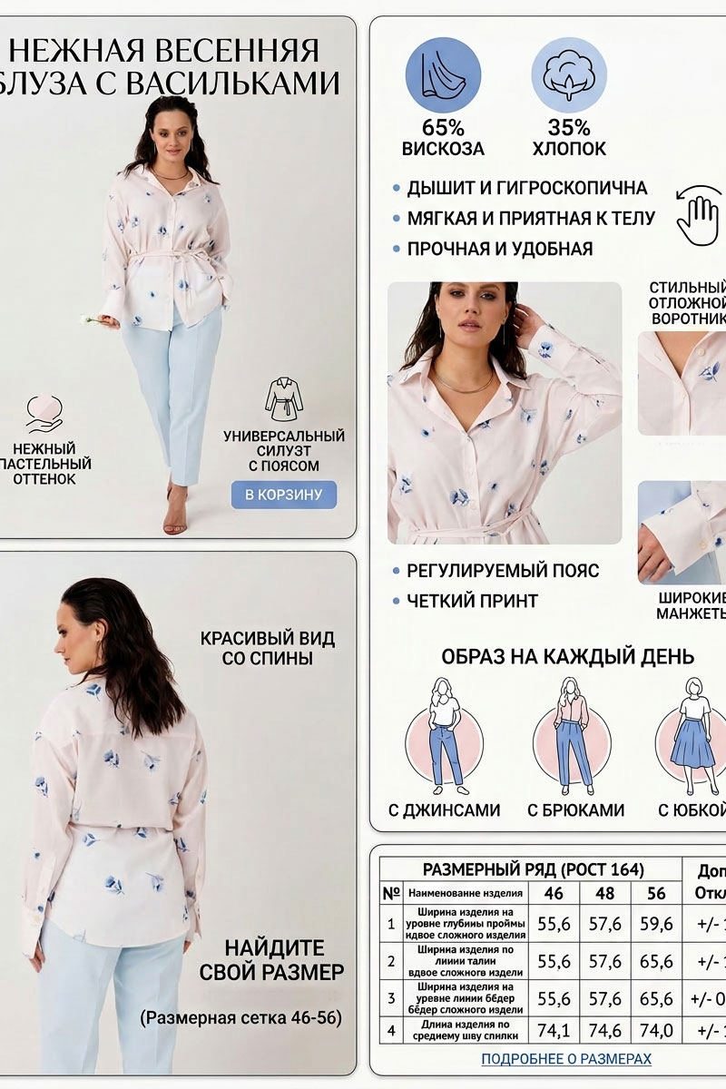 зависимости от настроения и образа. Нежный принт добавляет образу свежести и лёгкости, а фигурный низ делает силуэт более динамичным и современным. Классические элементы — рубашечный