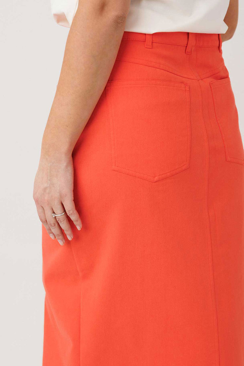 Юбка женская слегка зауженная к низу на притачном поясе со шлёвками, который застёгивается на прорезную петлю и пуговицу. По переду фигурный подрез заканчивается разрезом, застёжка на молнию с гульфиком и откоском и карманы. По спинке центральный шов, кокетка и накладные карманы. Юбка без подкладки. Украшают юбку двойные отделочные строчки.