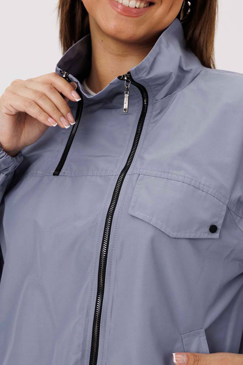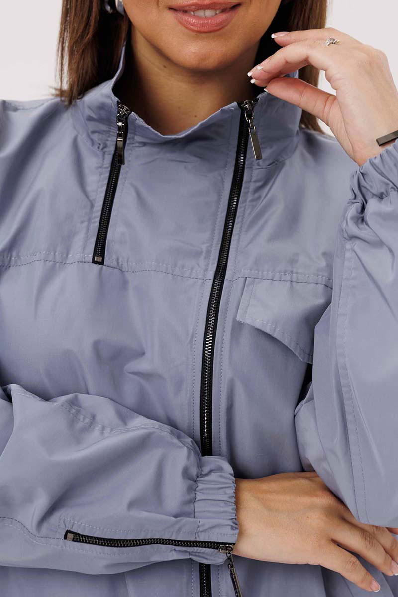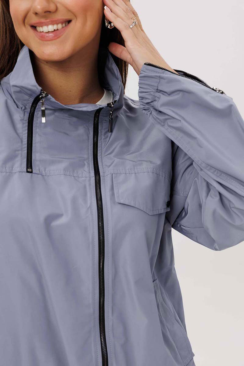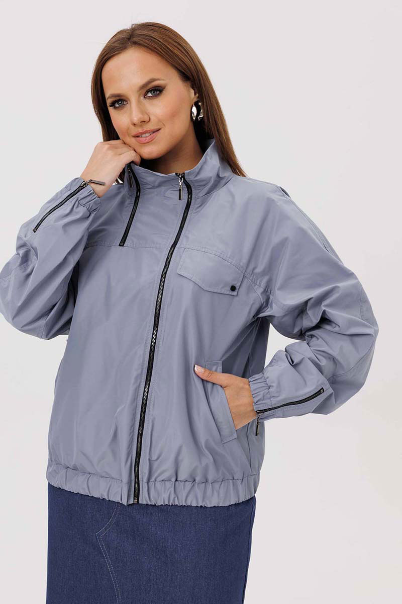Жакет свободный со спущенными плечами на подкладке, по низу притачная планка, в которую продета резинка. По переду накладные карманы с клапанами. Воротник отложной. Рукава одношовные втачные по низу резинка.