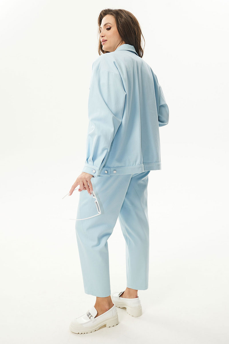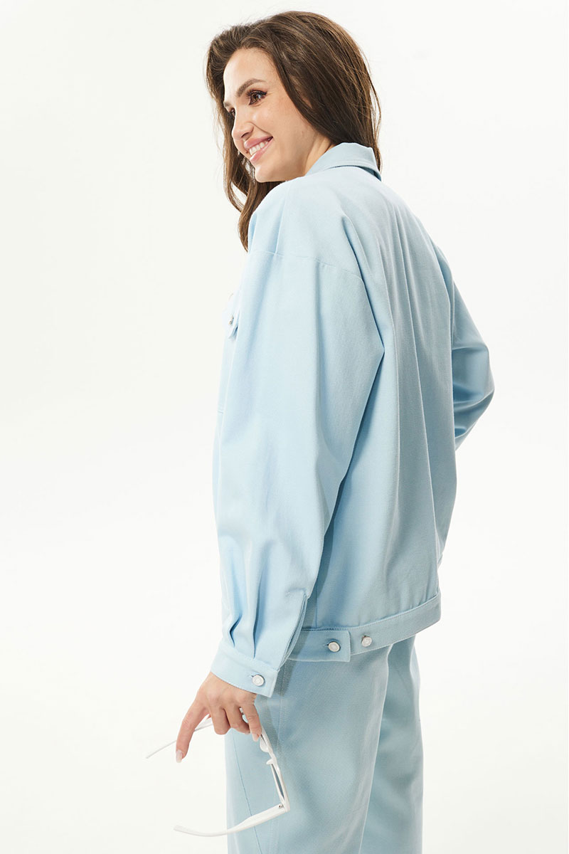 Джинсовка (жакет) со спущенными плечами застёгивается на шесть прорезных петель и пуговиц. По переду прорезные карманы с широкой листочкой и накладные карманы с фигурными клапанами на застёжке. Воротник отложной. Рукава одношовные втачные на манжете.