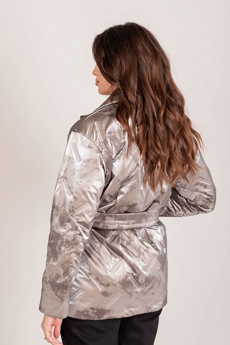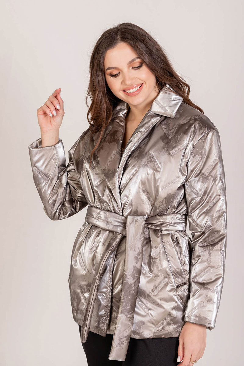 Куртка женская утеплённая, демисезонная, прямого силуэта, со спущенными плечами, выполнено из стёганной плащевой ткани на утеплителе изософт. По переду прорезные карманы с листочкой и застёжка на 3 кнопок. Воротник отложной с лацканами. Рукава одно шовные втачные. Куртка на подкладке.