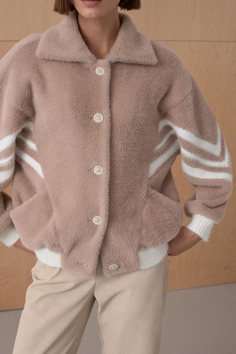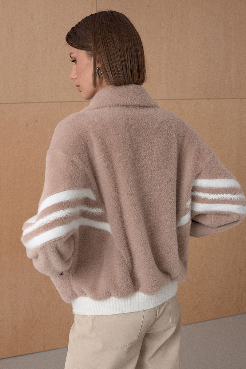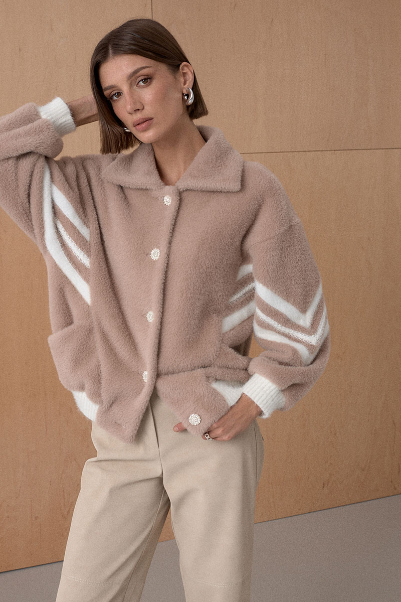 Джемпер из мягкого фактурного трикотажного полотна. Джемпер в силуэте олимпийки. Застежка на премиальные итальянские пуговицы. На рукавах декоративные ленты в виде лампасов.