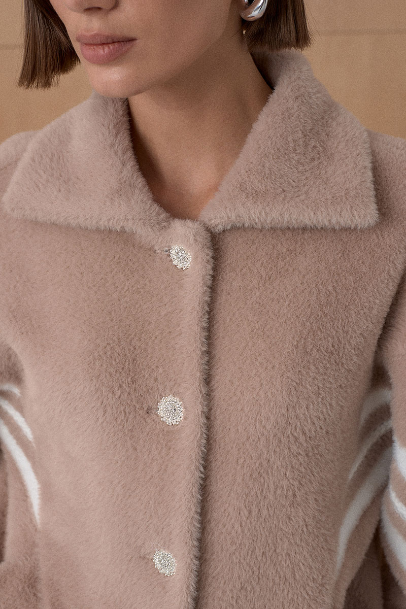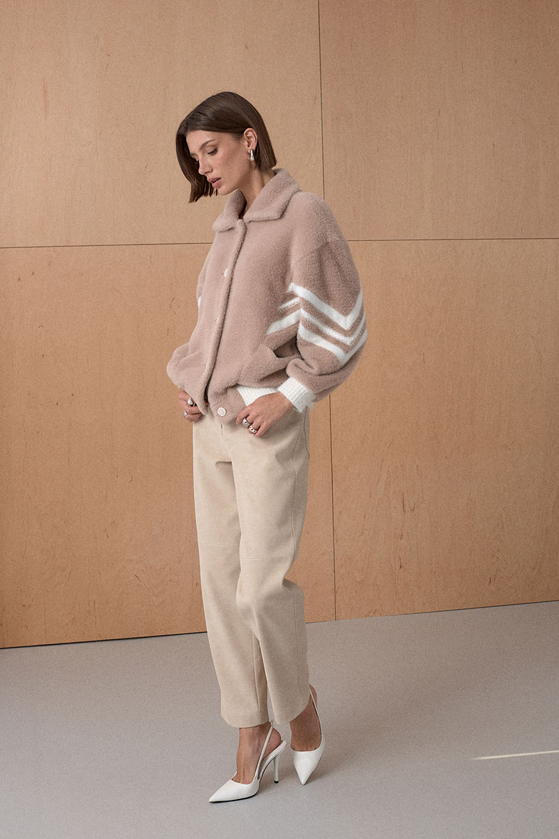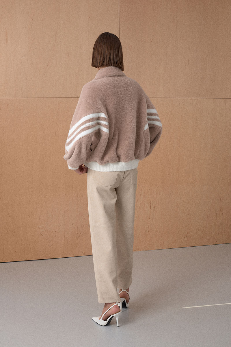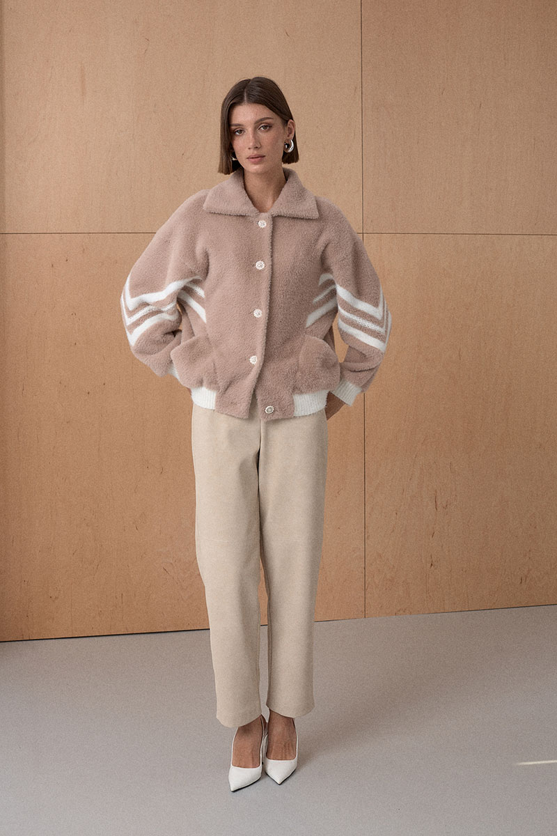 Джемпер из мягкого фактурного трикотажного полотна. Джемпер в силуэте олимпийки. Застежка на премиальные итальянские пуговицы. На рукавах декоративные ленты в виде лампасов.