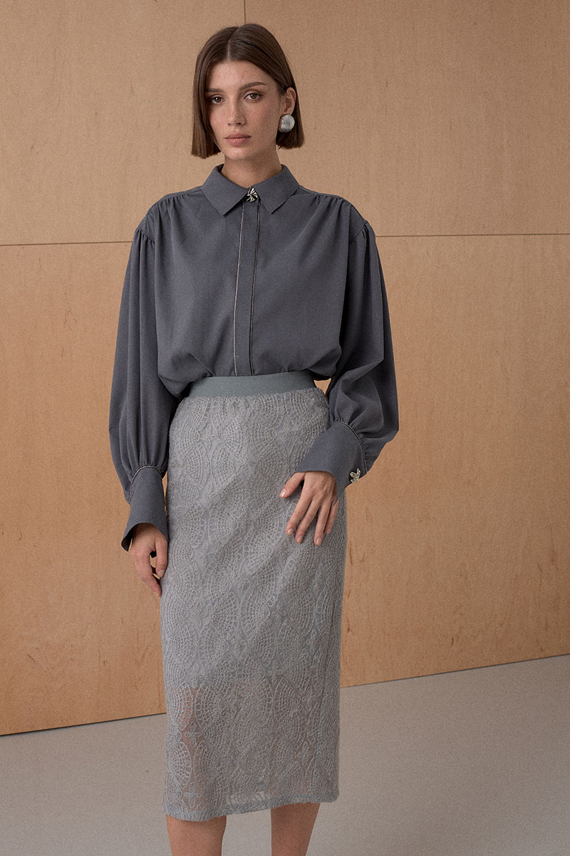 Рубашка свободного силуэта. С интересной кострукцией рукава и манжеты. Декоративные пуговицы.