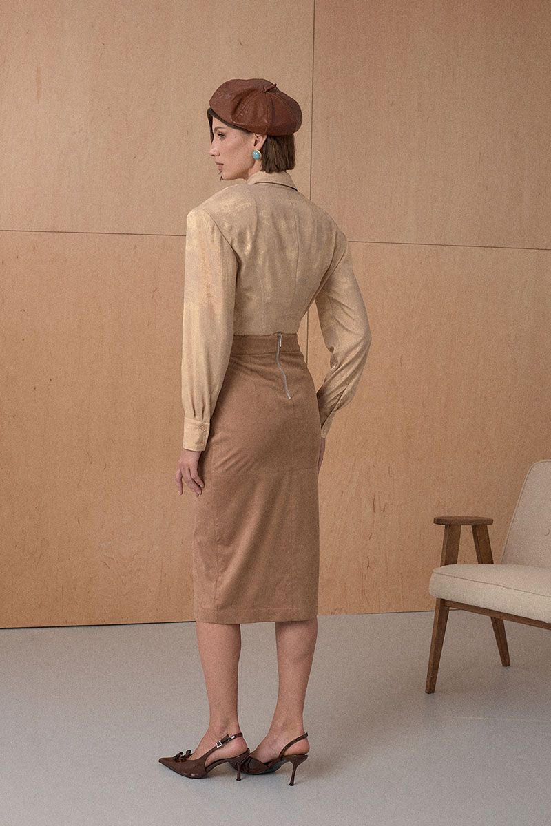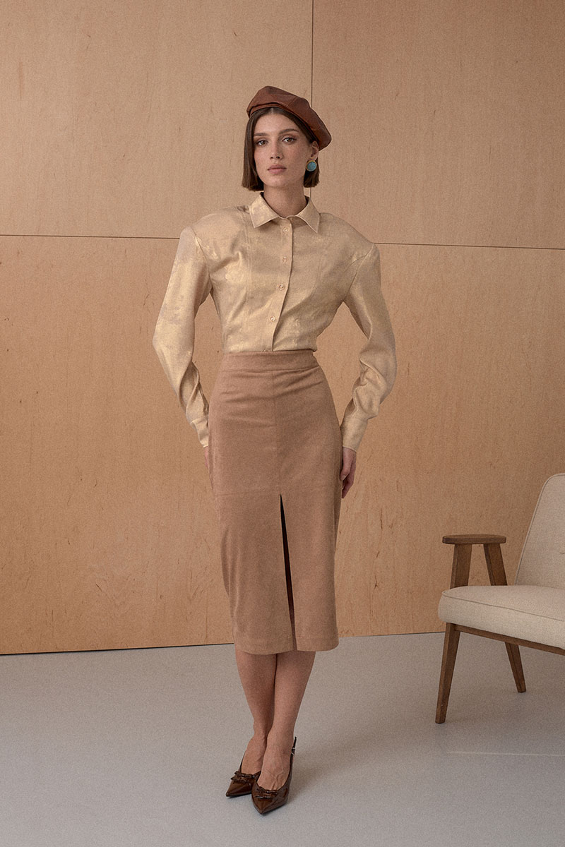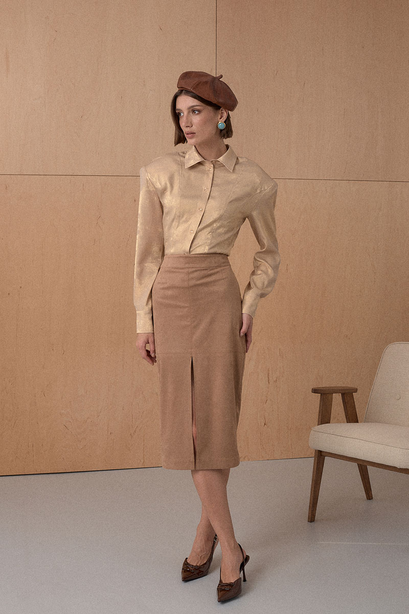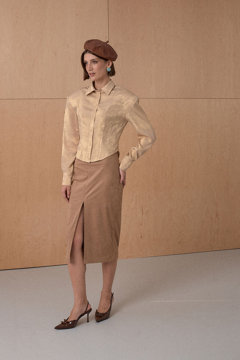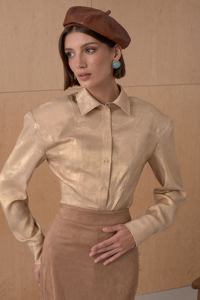 Блуза с имитацией корсетной формы по талии. Усиленная и расширенная форма плеча.