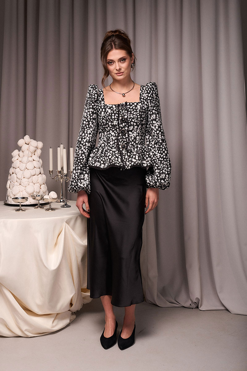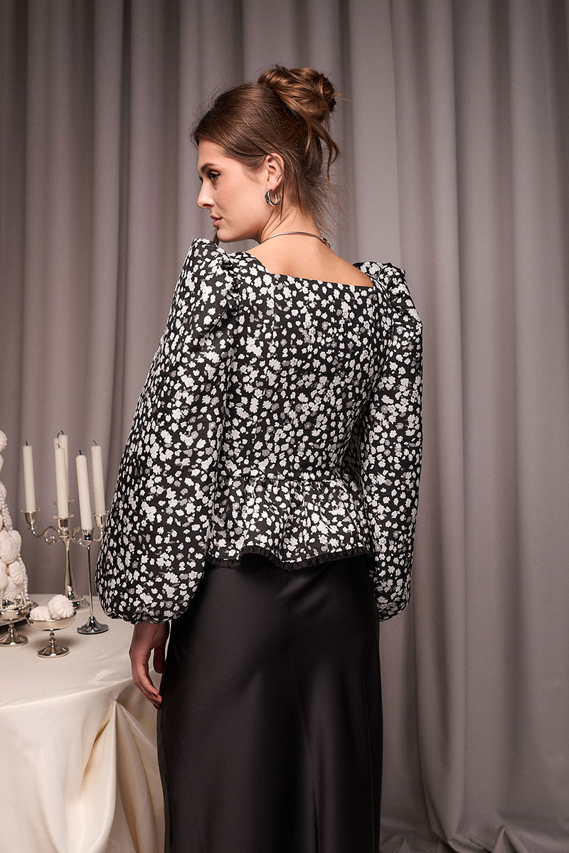 Топ из благородного жаккарда в мелкий стильзованный цветок.