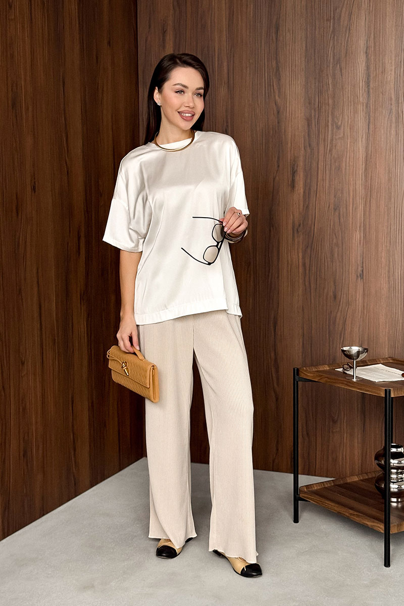 Футболка из вискозного сатина с застежкой на пуговицу на спинке.
