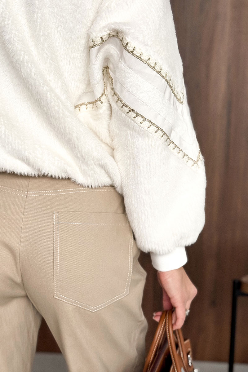 Джемпер в актульном крое в стиле олимпийки из приятного пушистого полотна. НЕ КОЛЕТСЯ. Застежка на премиальные дизайнерские пуговицы. Рукава декорированы тесьмами. Низ на резинке. Джемпер на подкладке.