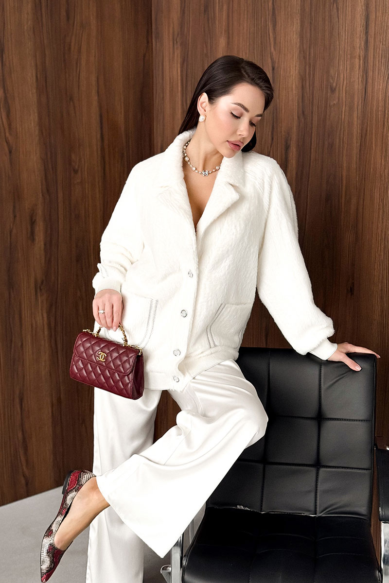 Жакет из приятного пушистого полотна. НЕ КОЛЕТСЯ. Жакет декорирован тесьмой. Низ изделия и низ рукава с довязом. Жакет на подкладке.