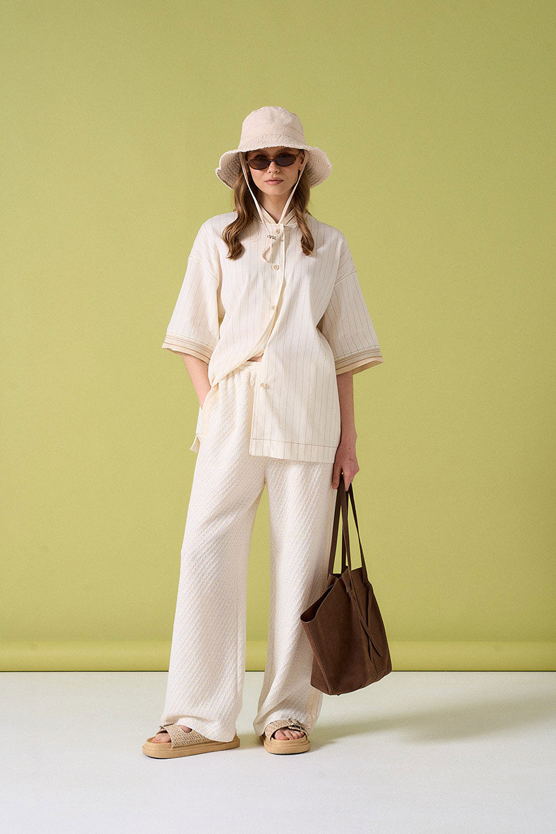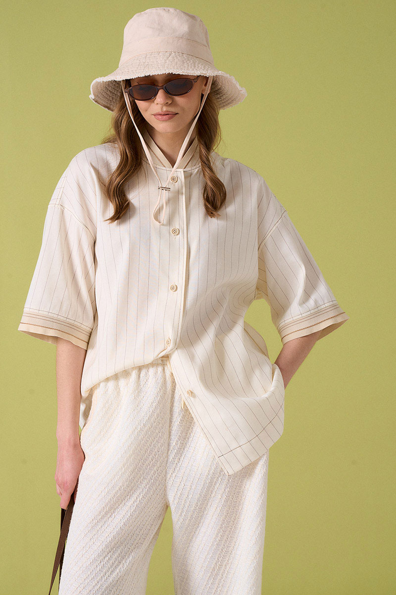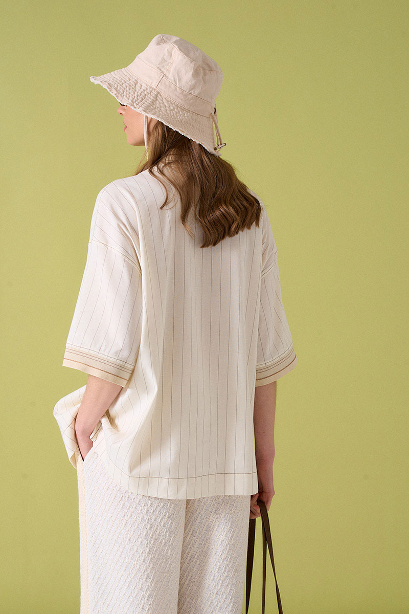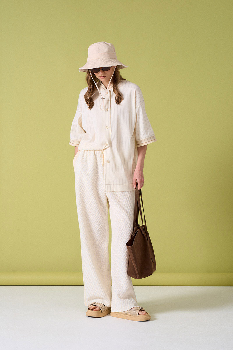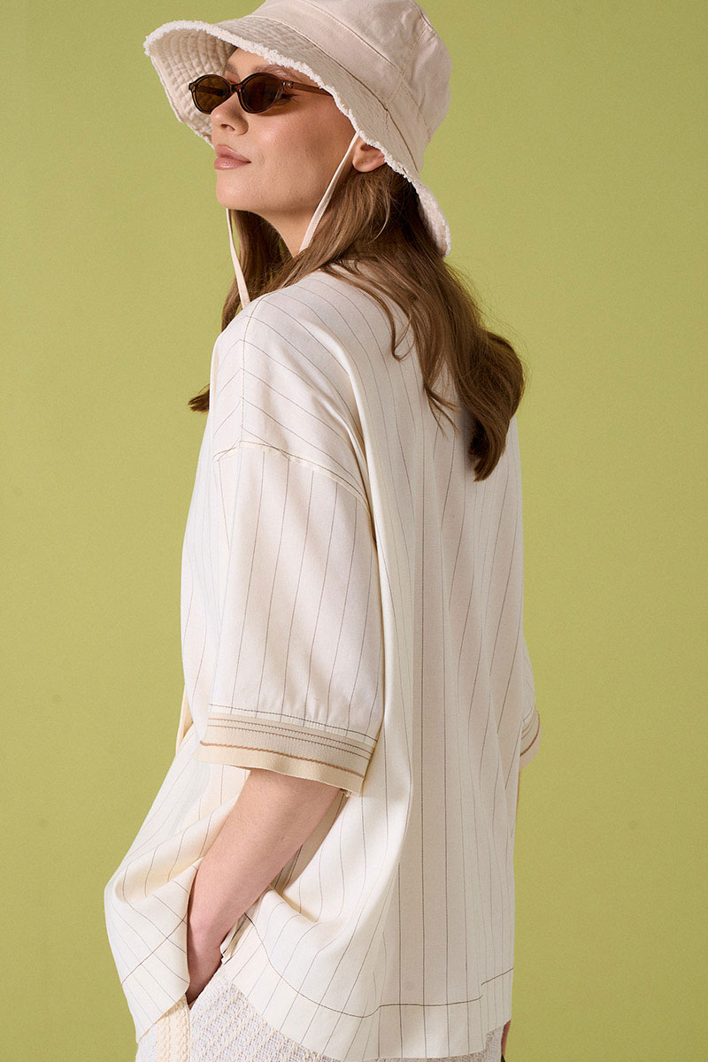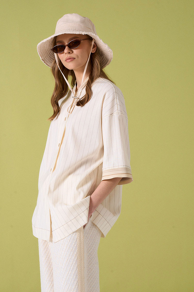 Рубашка из льняной ткани. Не колется. Воротник и низ рукава с довязом.