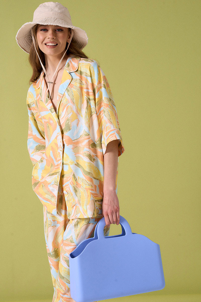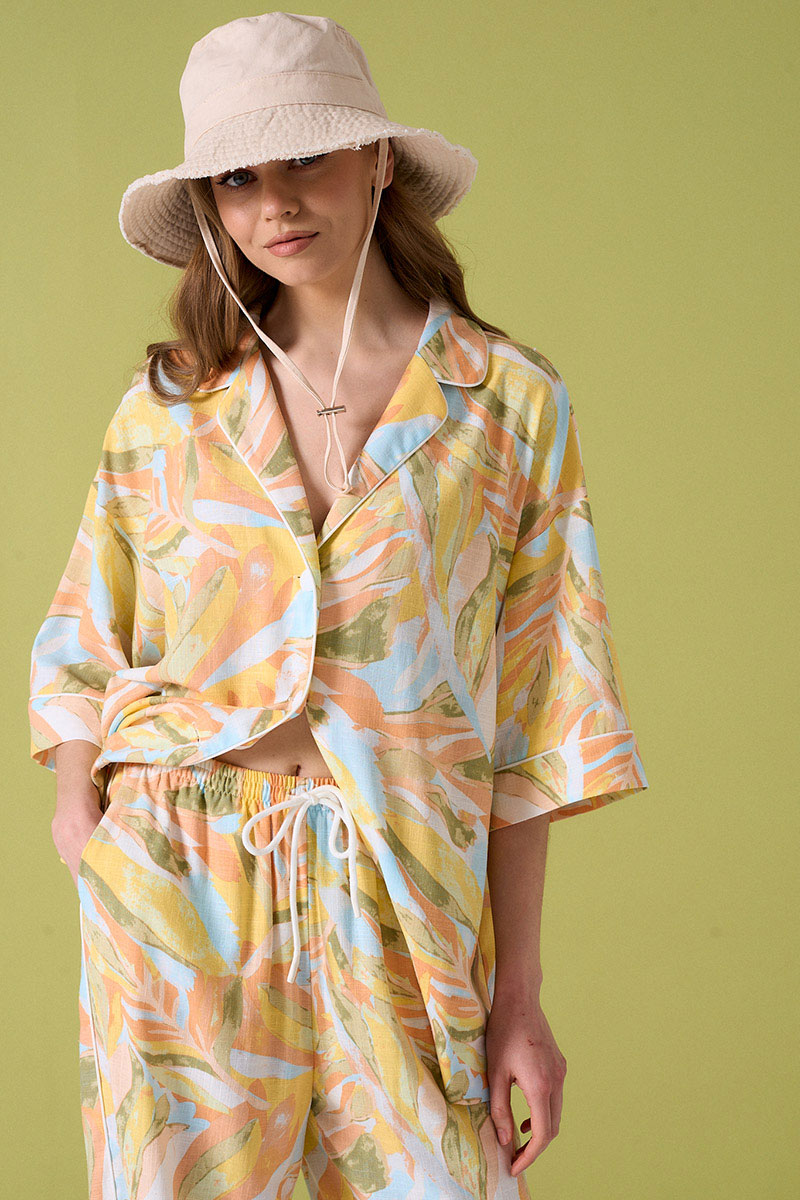 Рубашка из льняной ткани. Не колется. Воротник и низ рукава с белоснежным кантом.