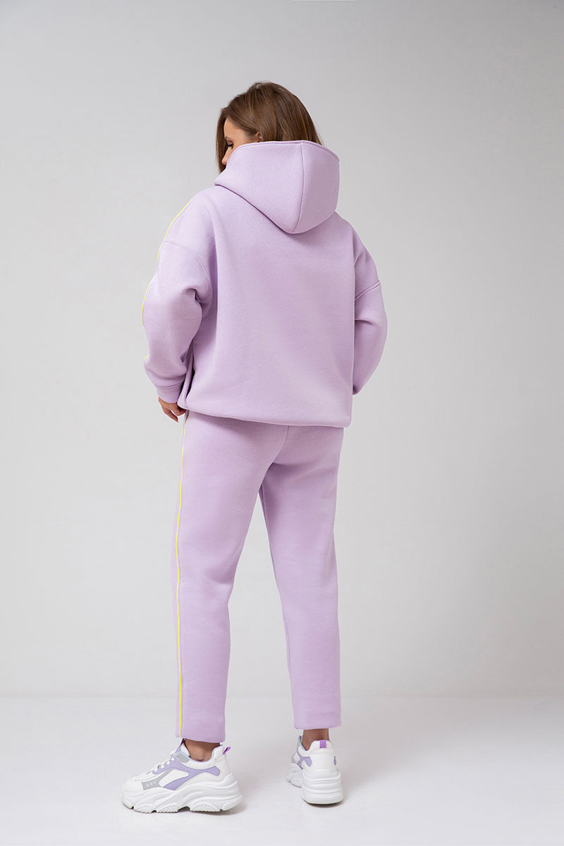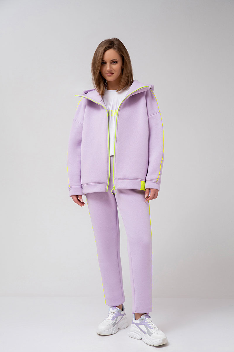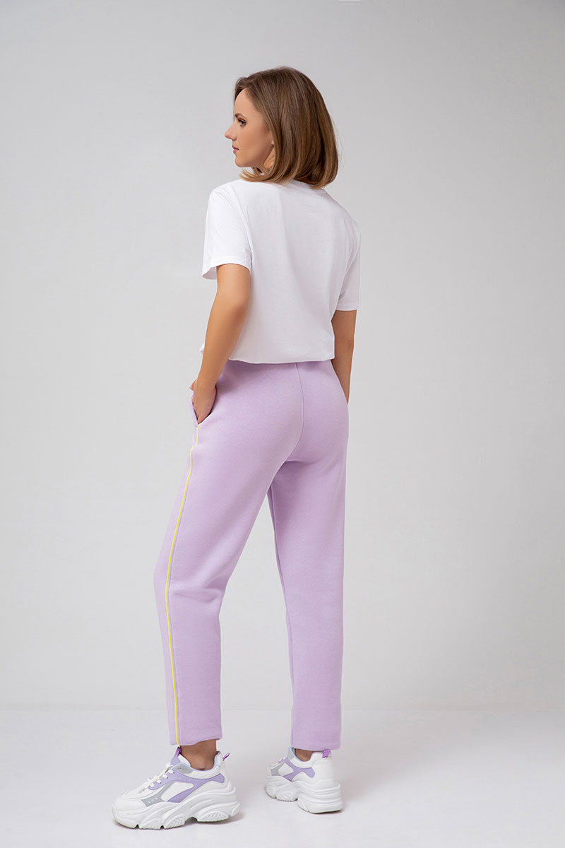 Брюки прямого силуэта из приятного трикотажа наивысшего качества - пенье с мягким начесом. В боковых швах вставлен неоновый светоотражающий кант. Пояс на резинке. В боковых швах карманы.