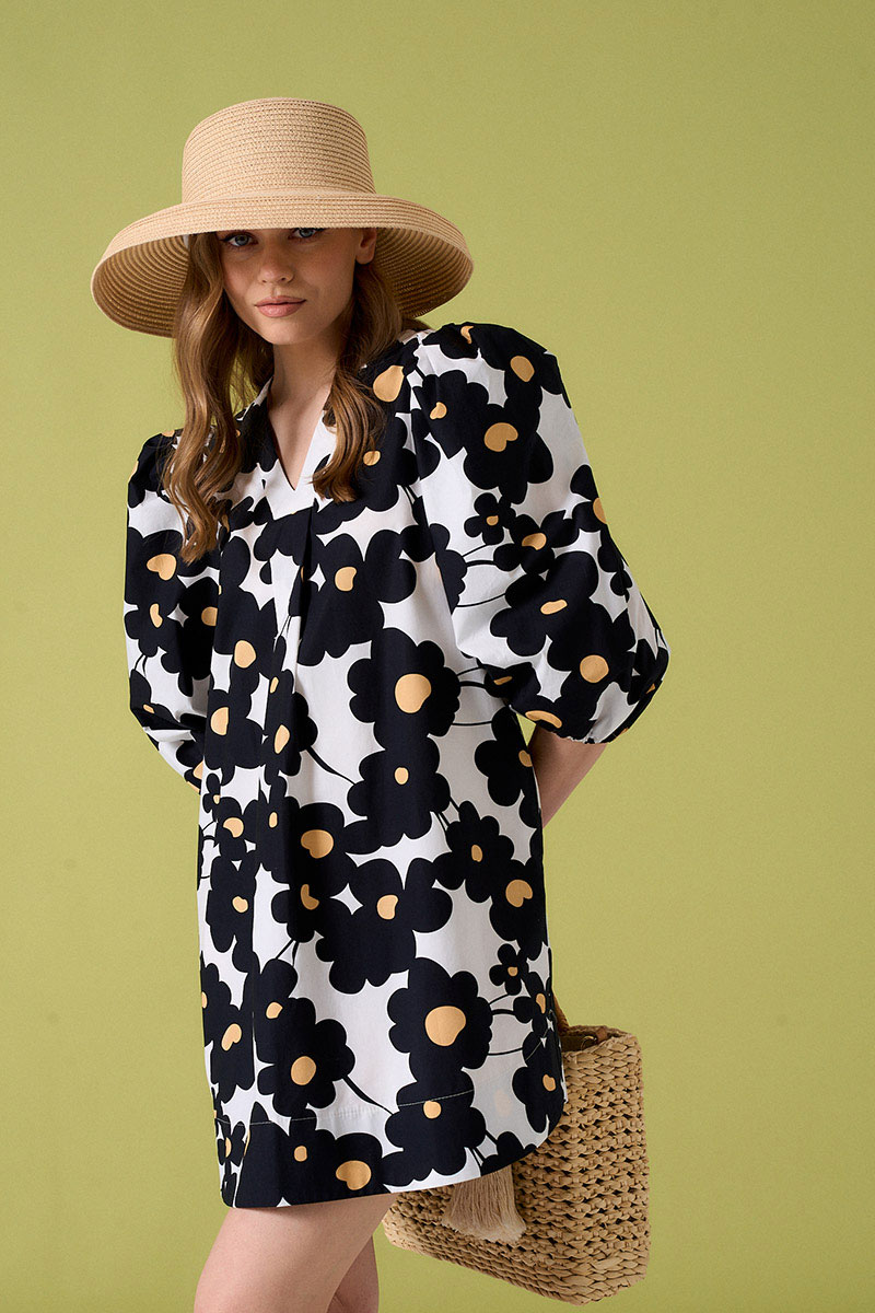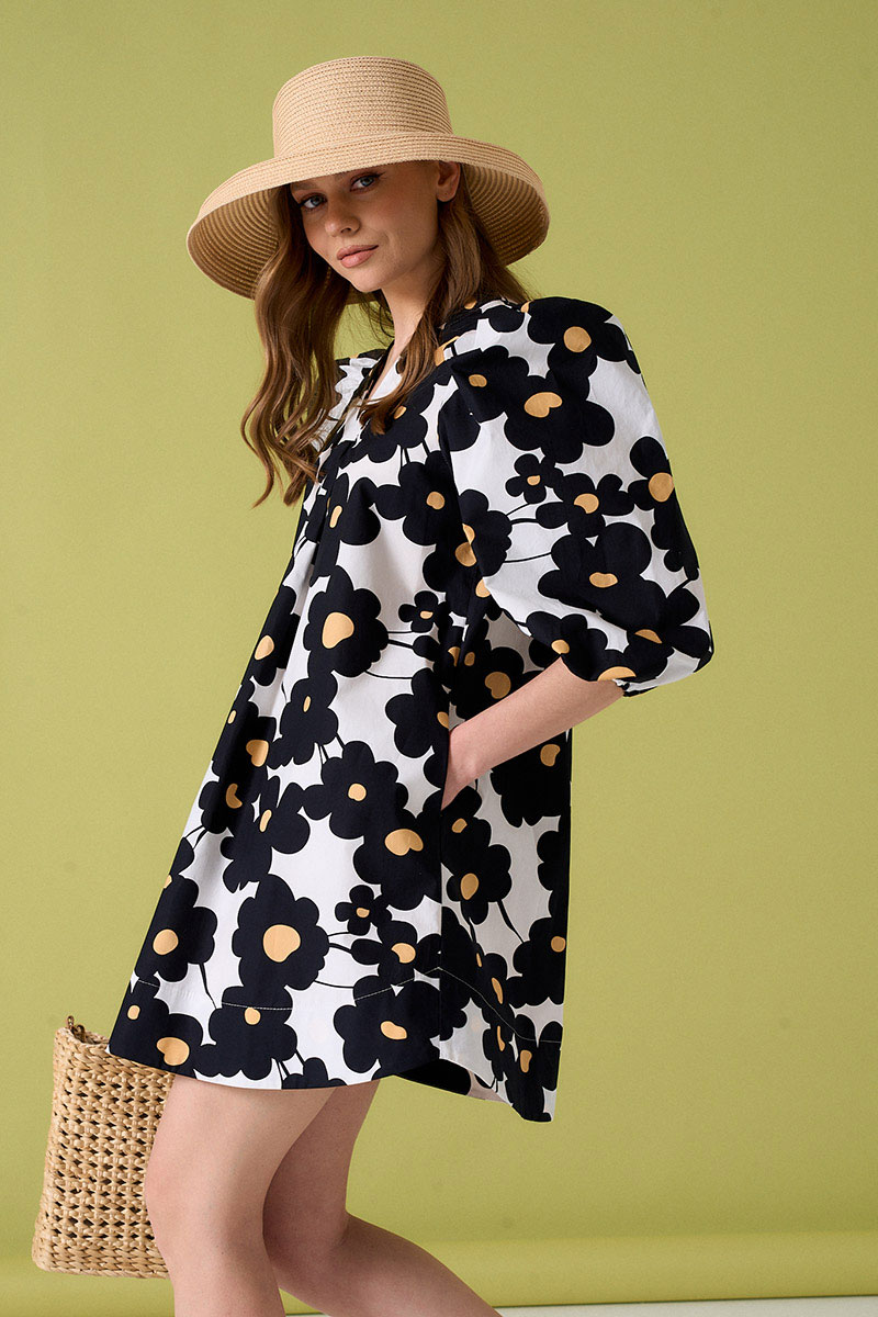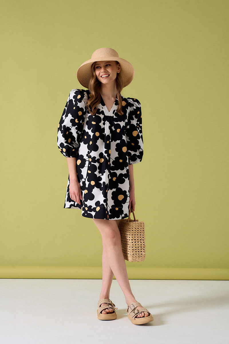 Платье из хлопковой ткани А-силуэта. В боковых швах карманы.