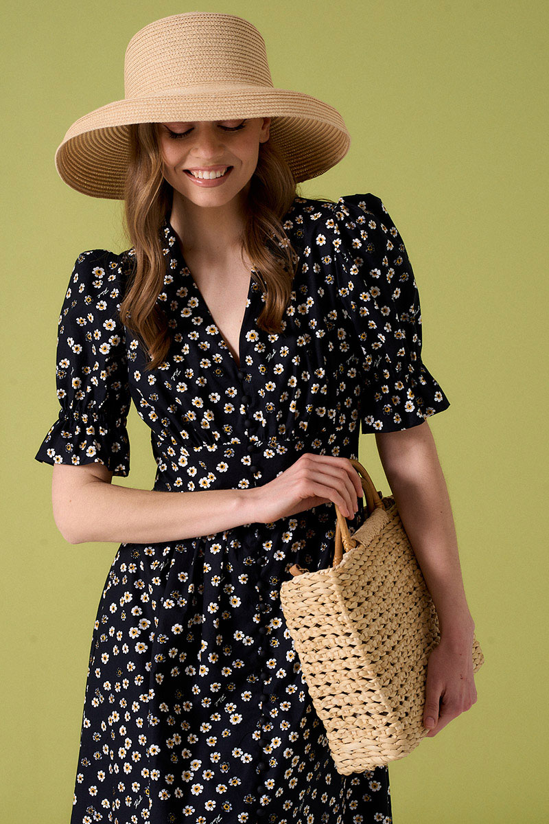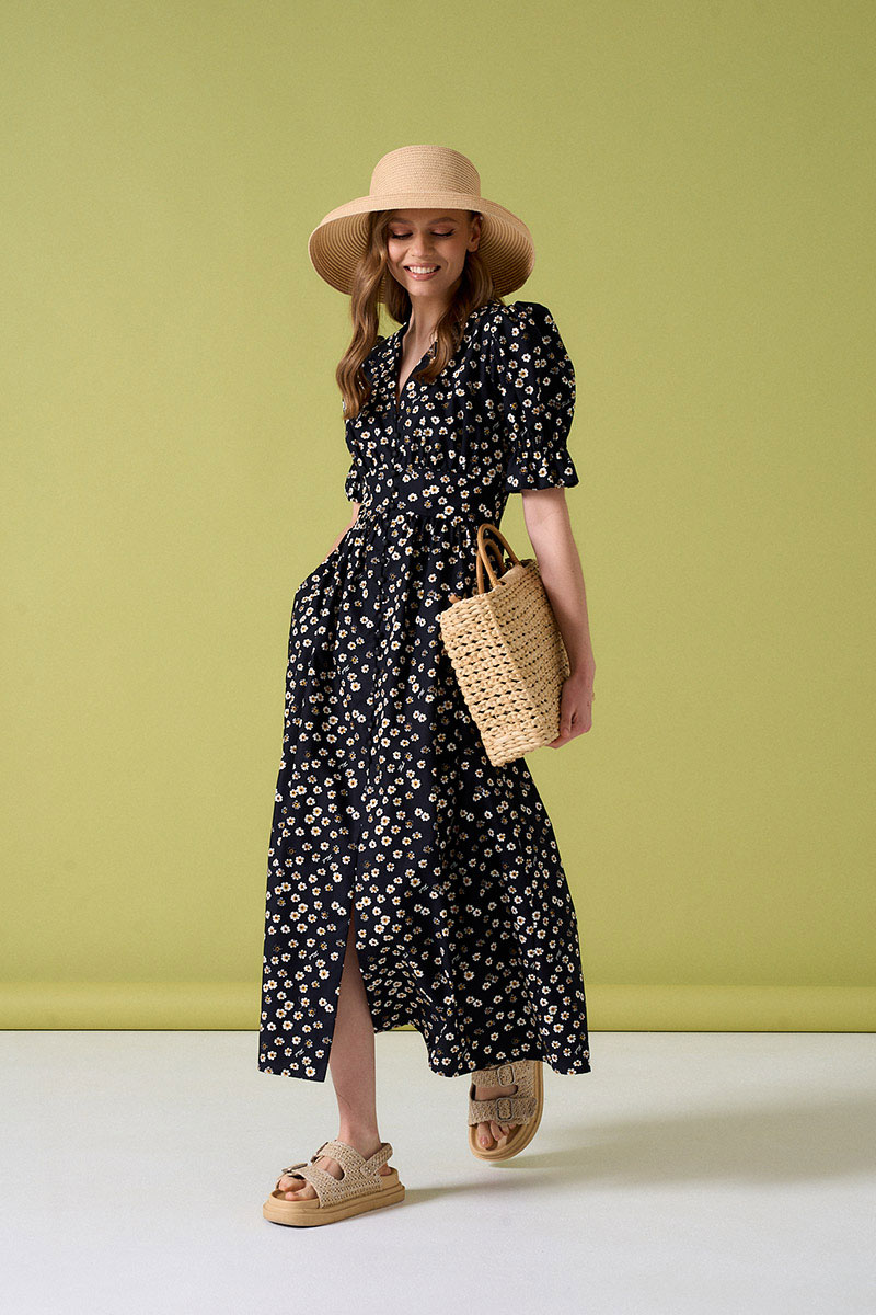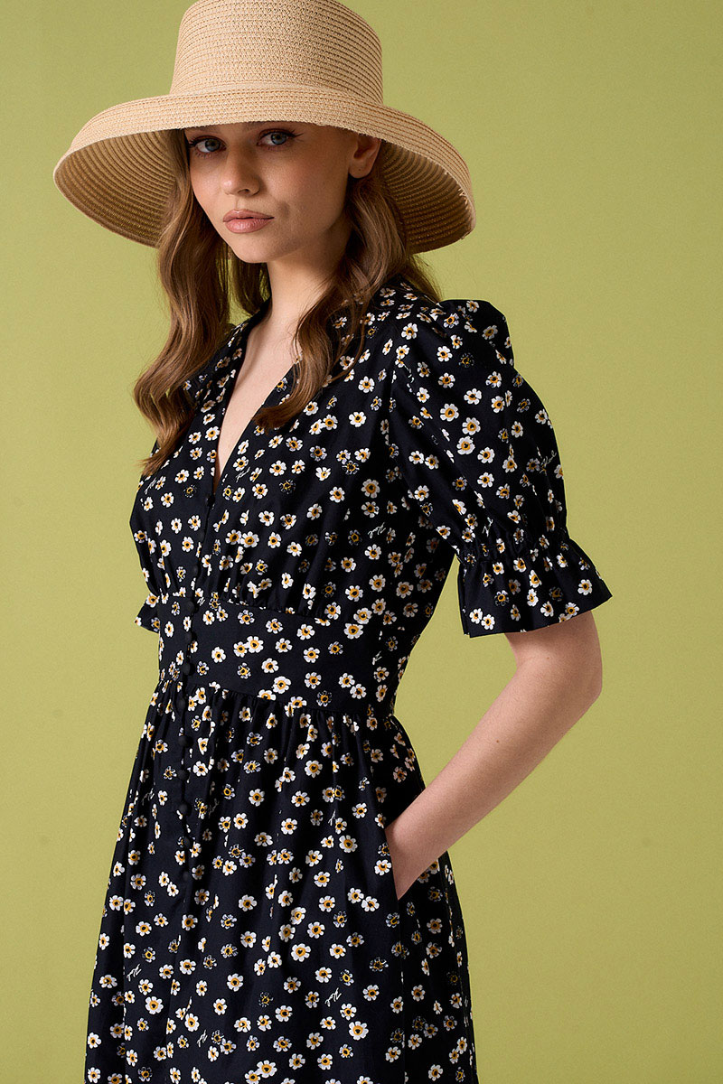 Платьеиз хлопковой ткани с застежкой на пуговицы по переду. Рукава фонарики.