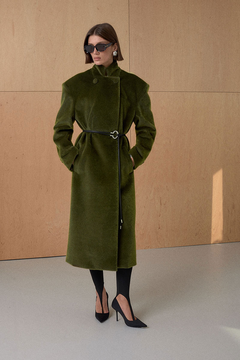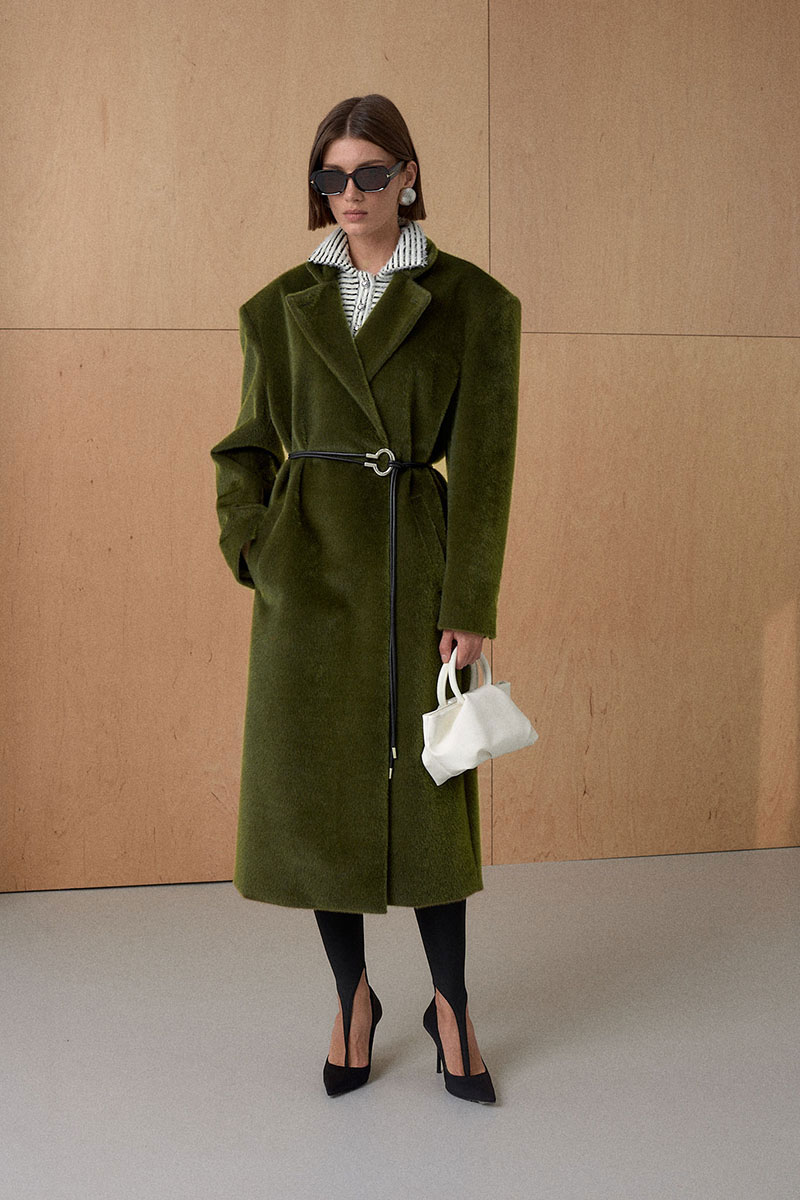 Пальто прямого силуэта с усиленой и расширенной формой плеча. Несколько вариантов застежки воротника. На утеплителе. Температурный режим до 0.
