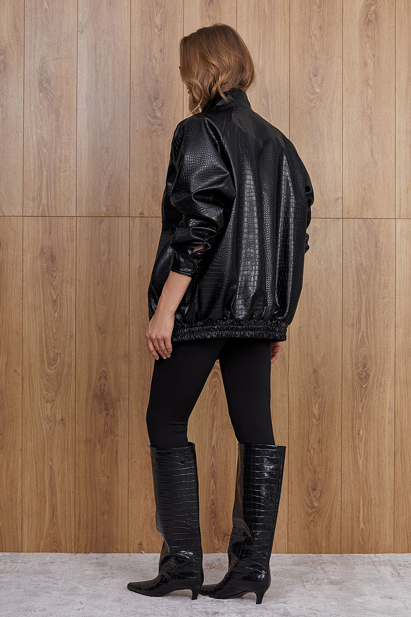 Мега стильная, объемная куртка в стиле CasuaL, выполнена из мягкой экокожи. Изделие прямого силуэта, на вискозной авторской подкладке. Изделие на молнии, и дополнительно закрывается притачной планкой. По переду прорезные карманы с листочками. Спинка прямая. Низ изделия на резинке. Рукав реглан, длинный, на притачной манжете. Воротник- стойка.