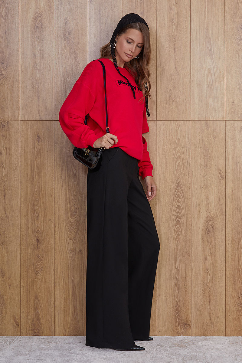 Брюки прямые от бедра, выполнены из премиальной костюмной ткани с содержанием вискозы. Брюки на поясе. Функциональные прорезные карманы в рамку в боковых швах. Сзади прорезные карманы в рамку – обманки. По переду застрочены канты.