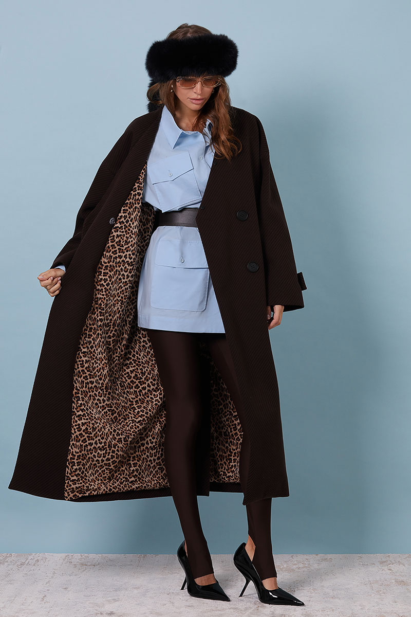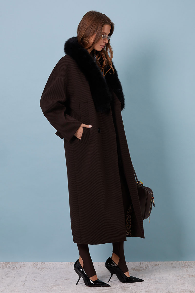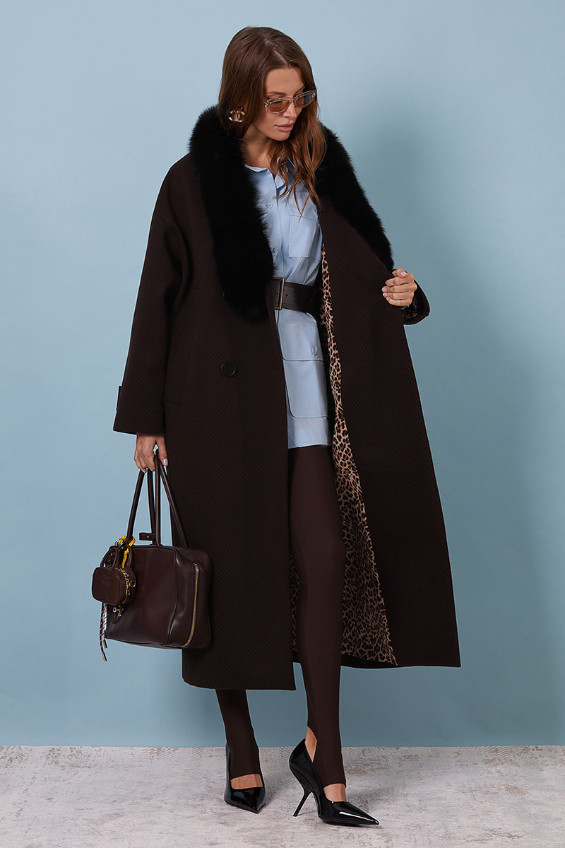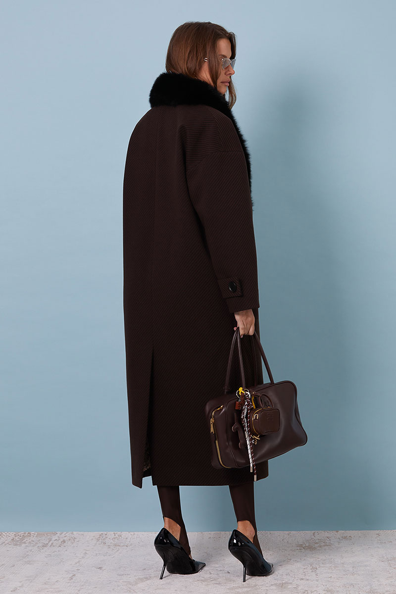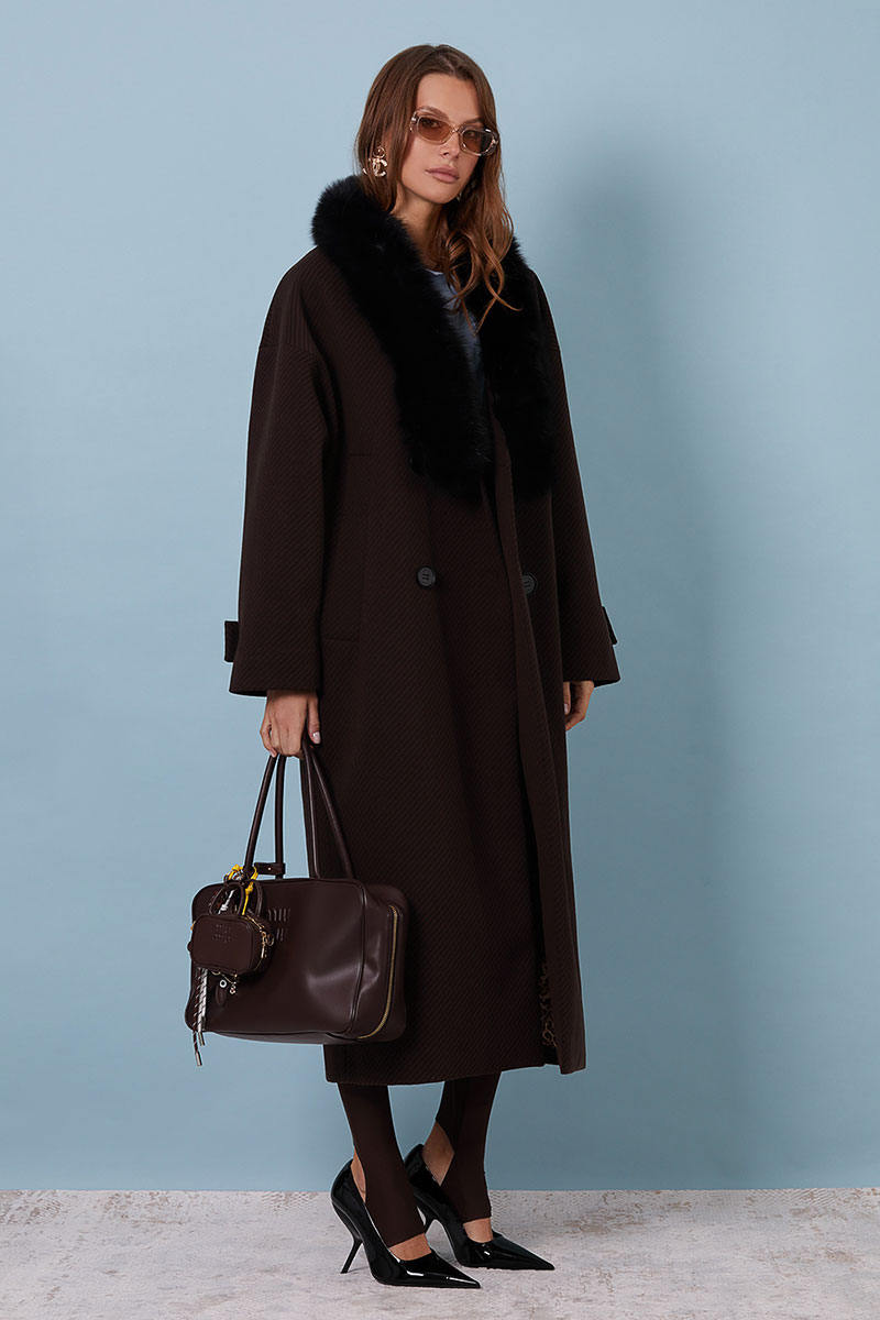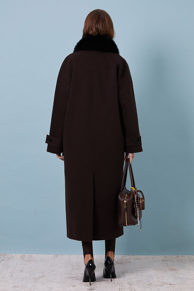 Fashion пальто, выполнено из премиальной, шерстяной пальтовой ткани. Пальто теплое, подходит для очень холодной осени. Прямой силуэт. Спущеная линия плеча. Длинный прямой рукав. По низу рукава декоративная пата. Изделие с двубортной застежкой на 2 петли и пуговицы. На полочках нагрудные вытачки, прорезные карманы с широкой листочкой. Борта прямые. Спинка прямая со средним швом, который заканчивается шлицей. V-образный вырез горловины. Воротник съемный. Вискозная подкладка.