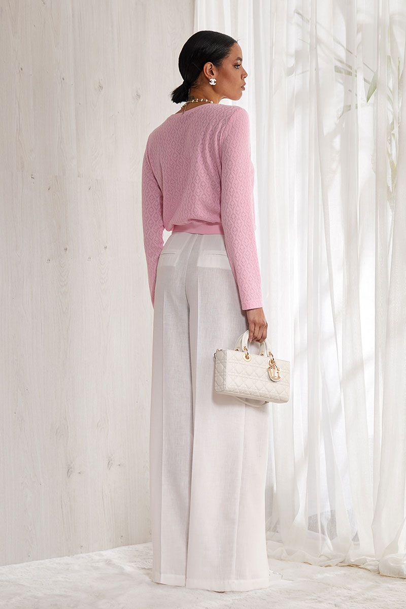 Джемпер выполнен из тонкого кружевного вискозного полотна.