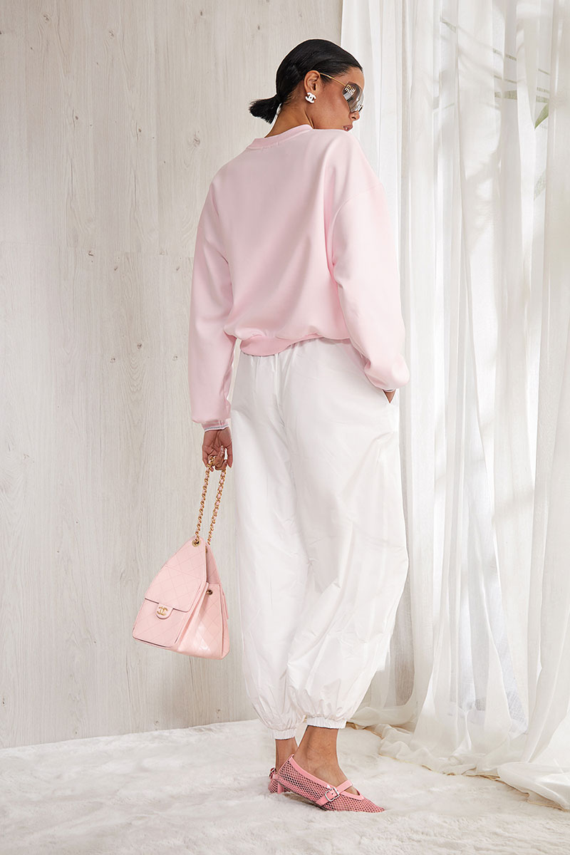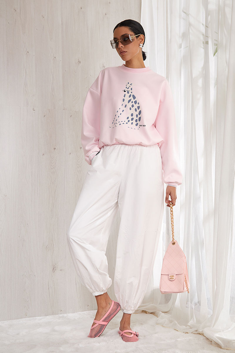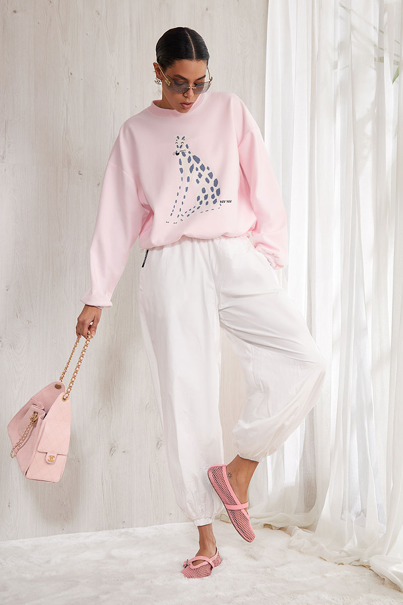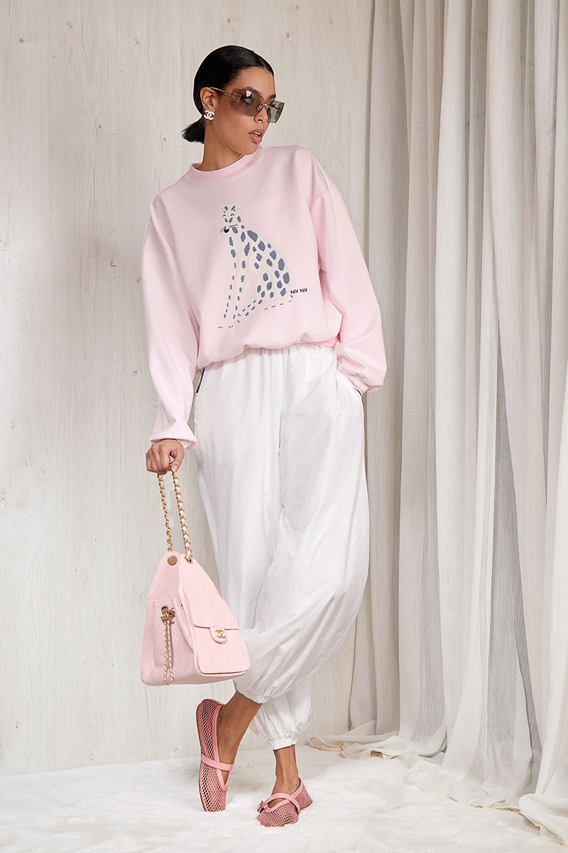Свитшот из плотного премиального трикотажного полотна (интерлок). Изделие прямое. Горловина круглая с притачной планкой из отделочной ткани. Рукав спущенный, длинный, объемный. Низ рукава на манжете из отделочной ткани. Низ изделия на планке из отделочной ткани. Перед и спинка изделия прямые. На передней половинке свитшота авторская печать.
