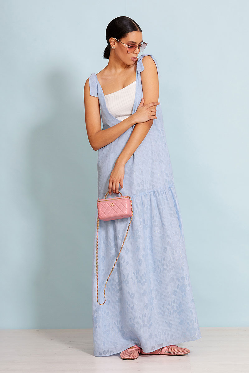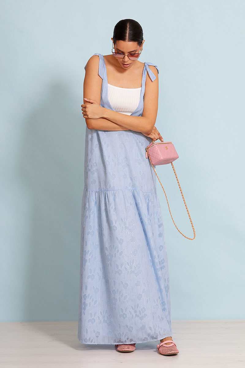 Изделие на хлопковой подкладке. Топ в комплекте. Стильное платье. Длина "Макси" (длинный/до пола). Свободное в талии и бедрах, в духе минимализма. Изделие без застежки. V-образный вырез горловины и спинки. Регулируемые бретели.