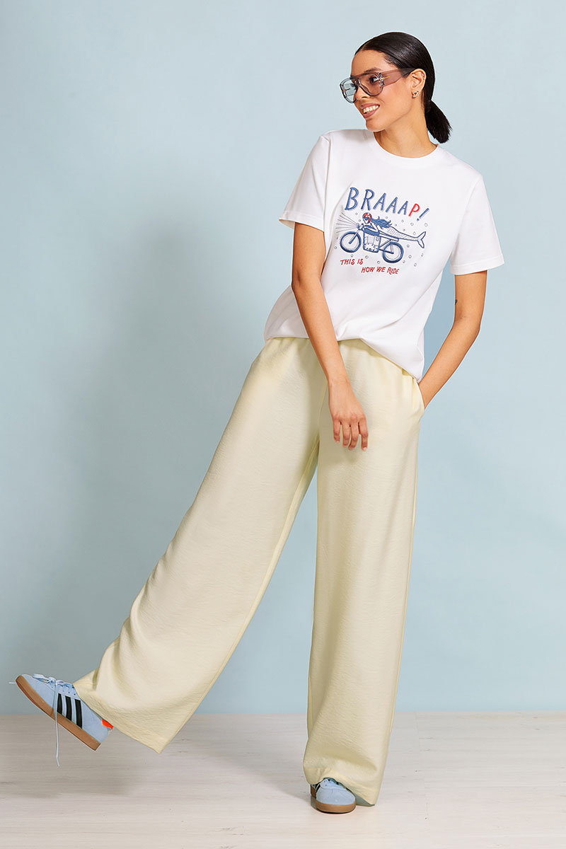 Объемная футболка "Оверсайз" (свободный/объемный крой) выполнена из плотного хлопкового трикотажного полотна (интерлок). Спущенная линия плеча. Рукав до локтя. Горловина круглая с притачной планкой. Дизайнерский принт “ MOTO” на передней половинке футболки.