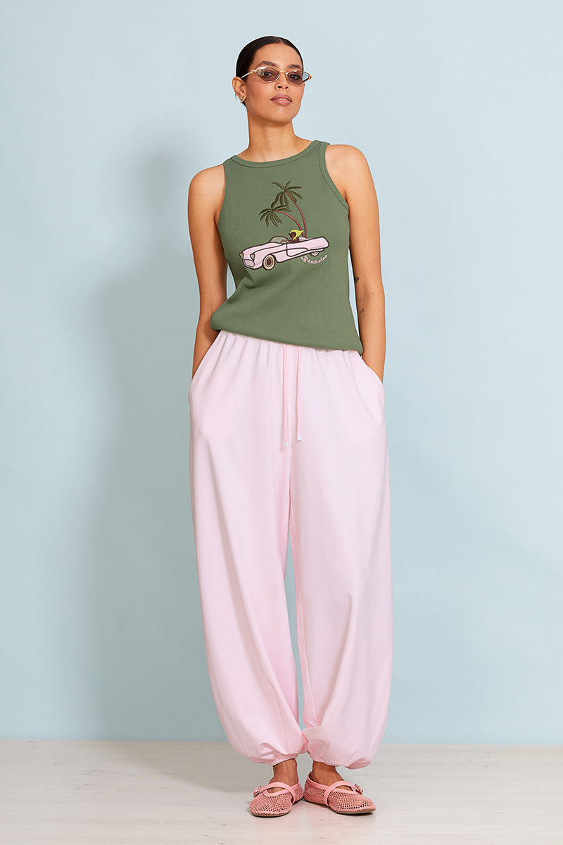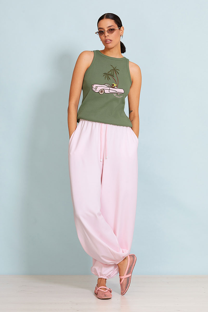 Топ выполнен из трикотажного полотна в рубчик. Изделие приталенное. Горловина круглая. Линия плеча зауженная. На полочке авторская вышивка.