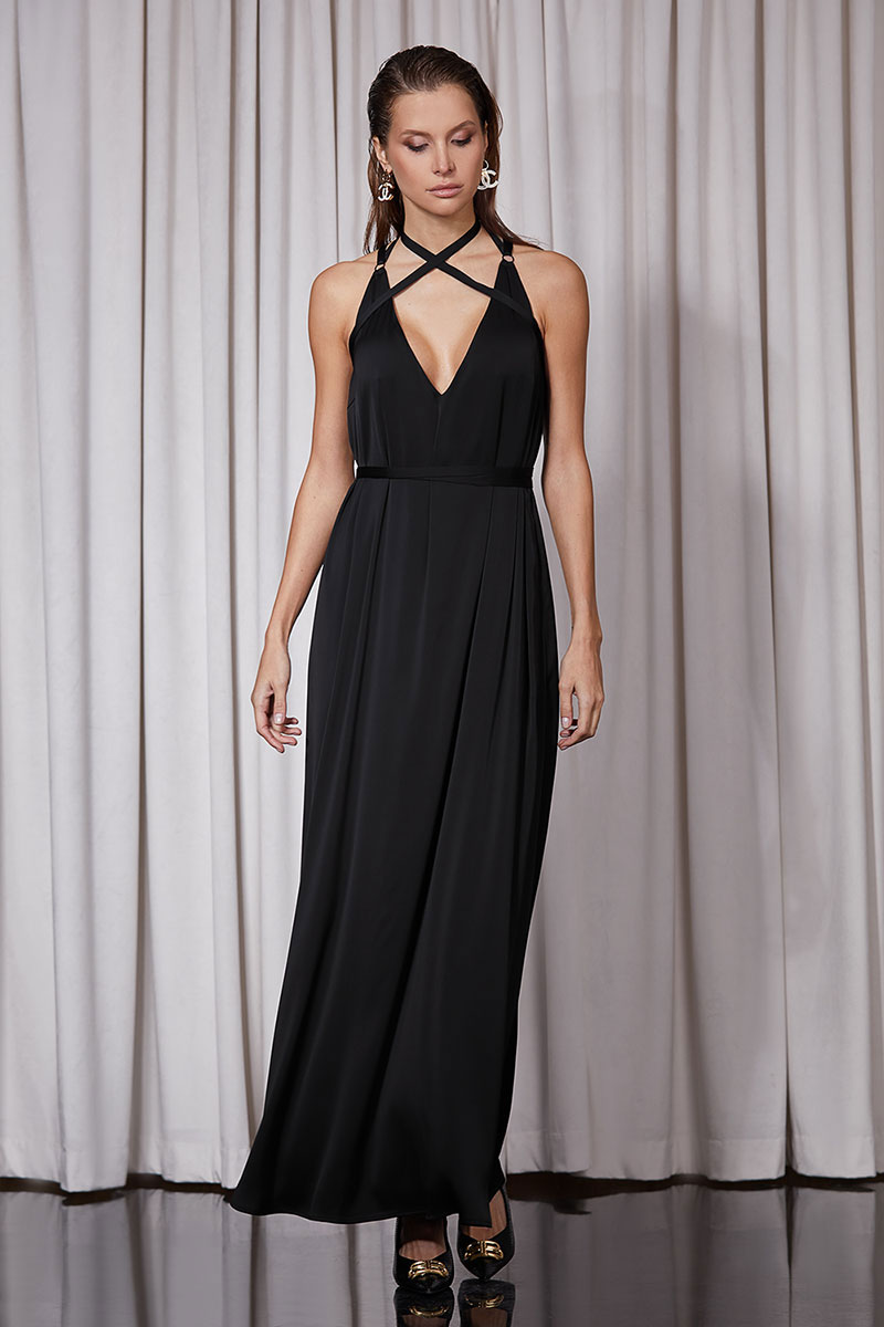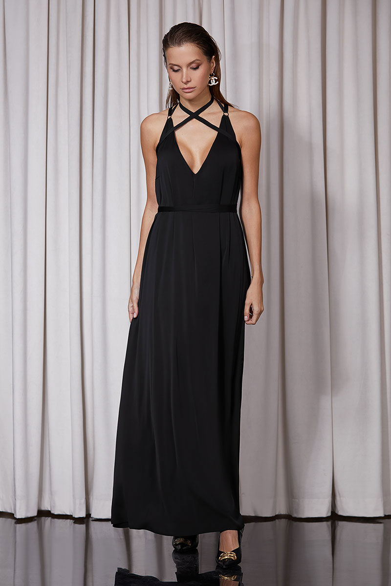 Платье прямого силуэта. Перед и спинка прямые. Глубокий V-образный вырез по переду. Регулируемые бретели. Съемный декоративный пояс в комплекте.