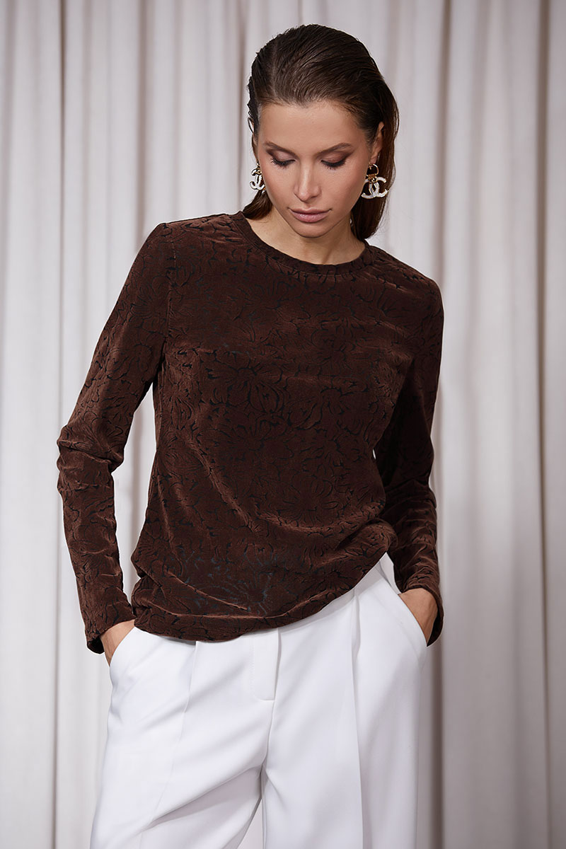 Брюки прямого кроя, выполнены из костюмной ткани. Брюки на поясе со шлевками. Функциональные прорезные карманы в боковых швах. Сзади прорезные карманы с листочками – обманки. По переду глубокие односторонние складки.
