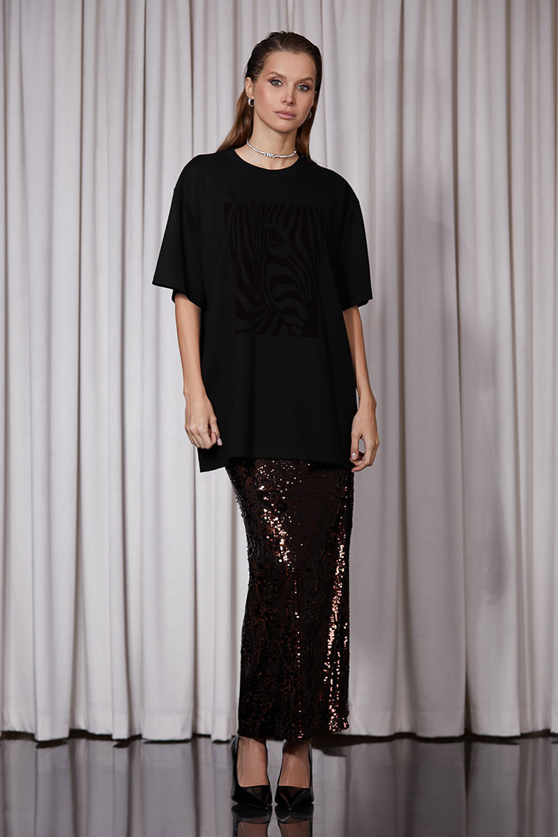 Юбка на притачном поясе, в который вставлена резинка. Сбоку разрез.