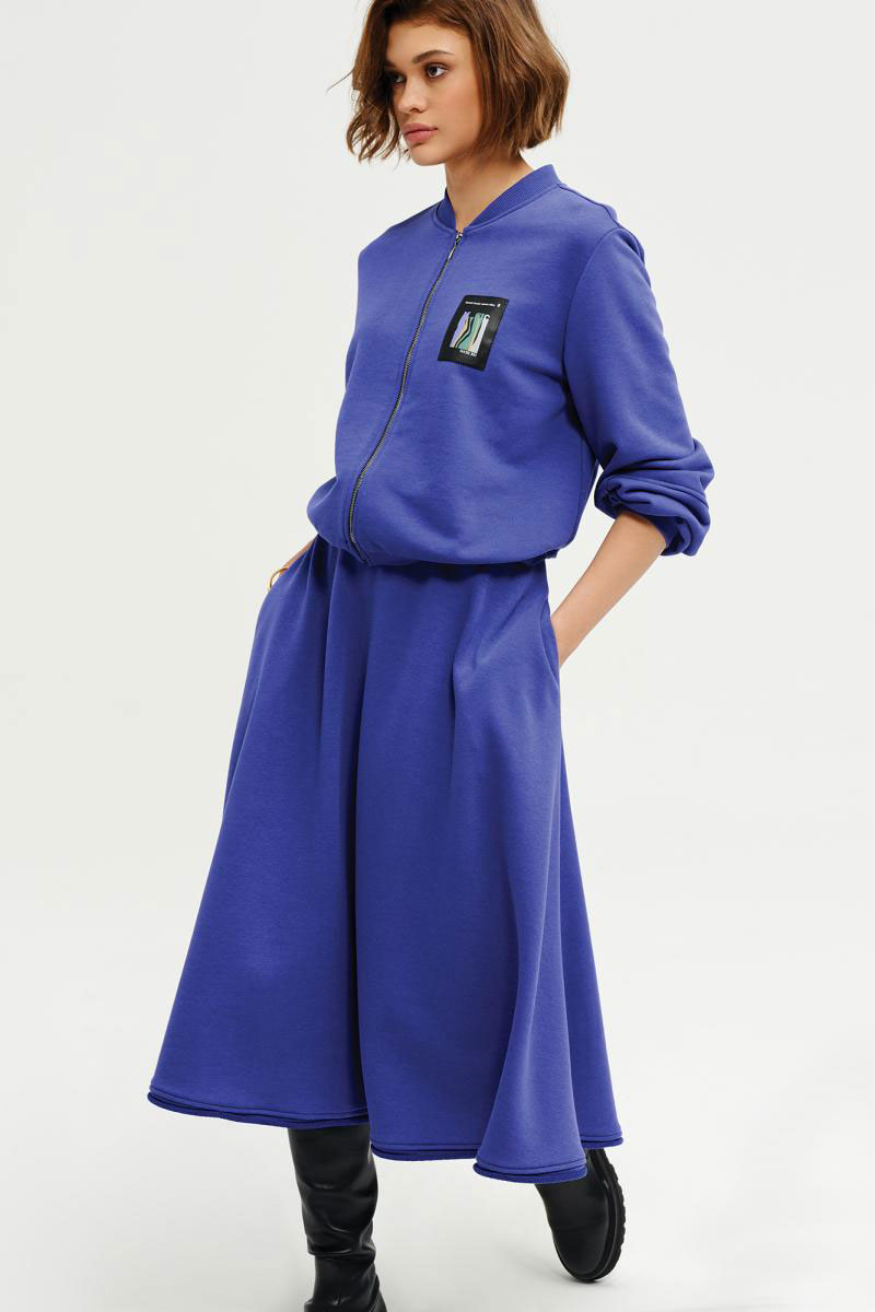 Трикотажная юбка на резинке расклешённого силуэта из трикотажного полотна премиального качества в светло-фиолетовом оттенке.