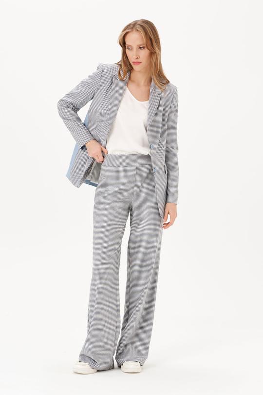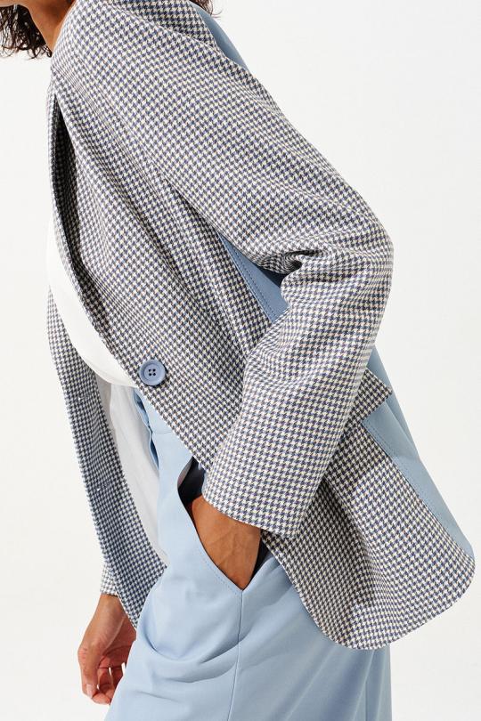 Жакет классического кроя из комбинированных полотен. На фото с брюками под артикулом 4011 и юбкой под артикулом 2012.
