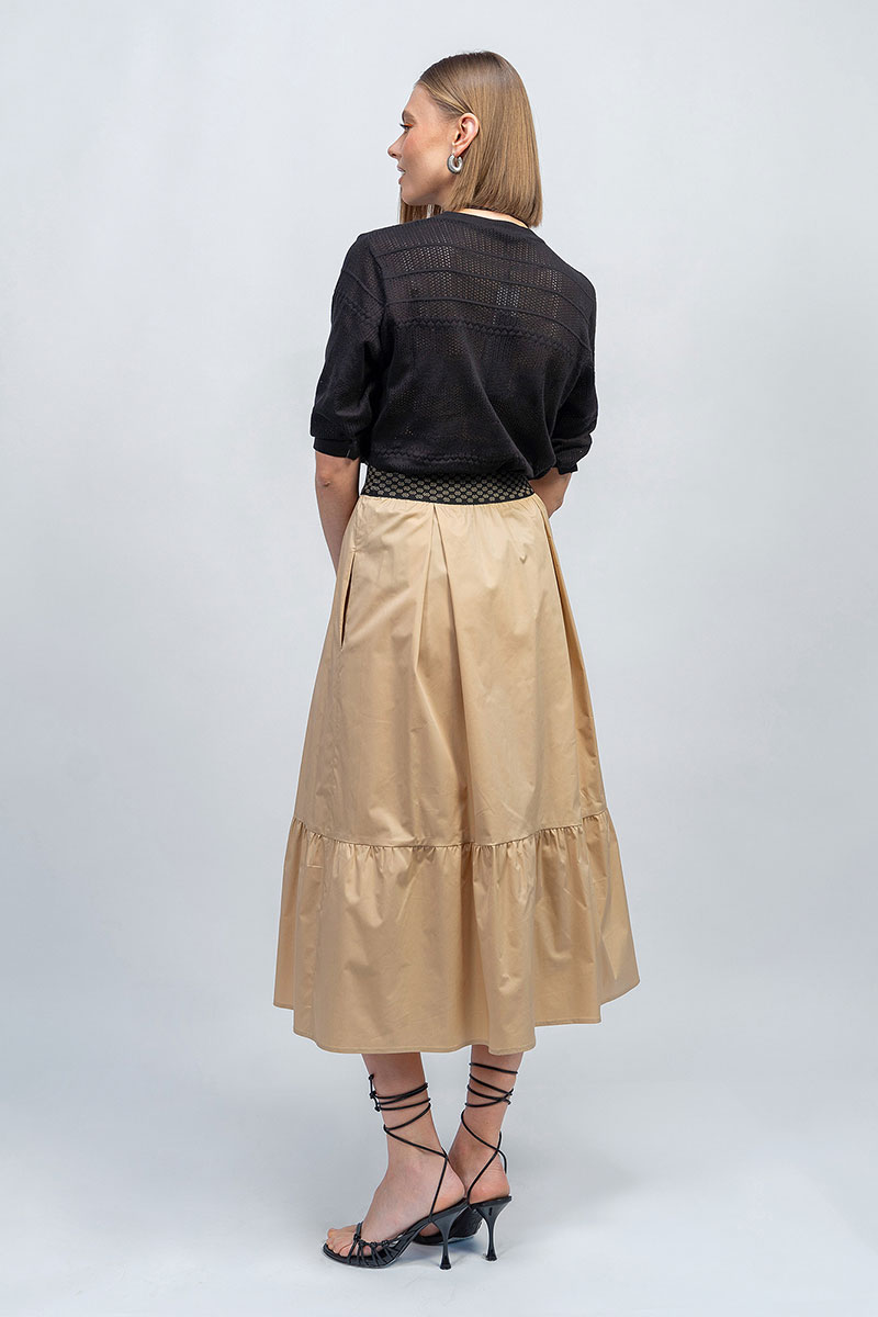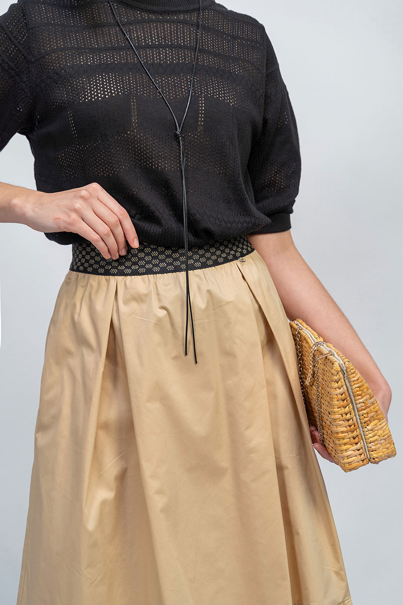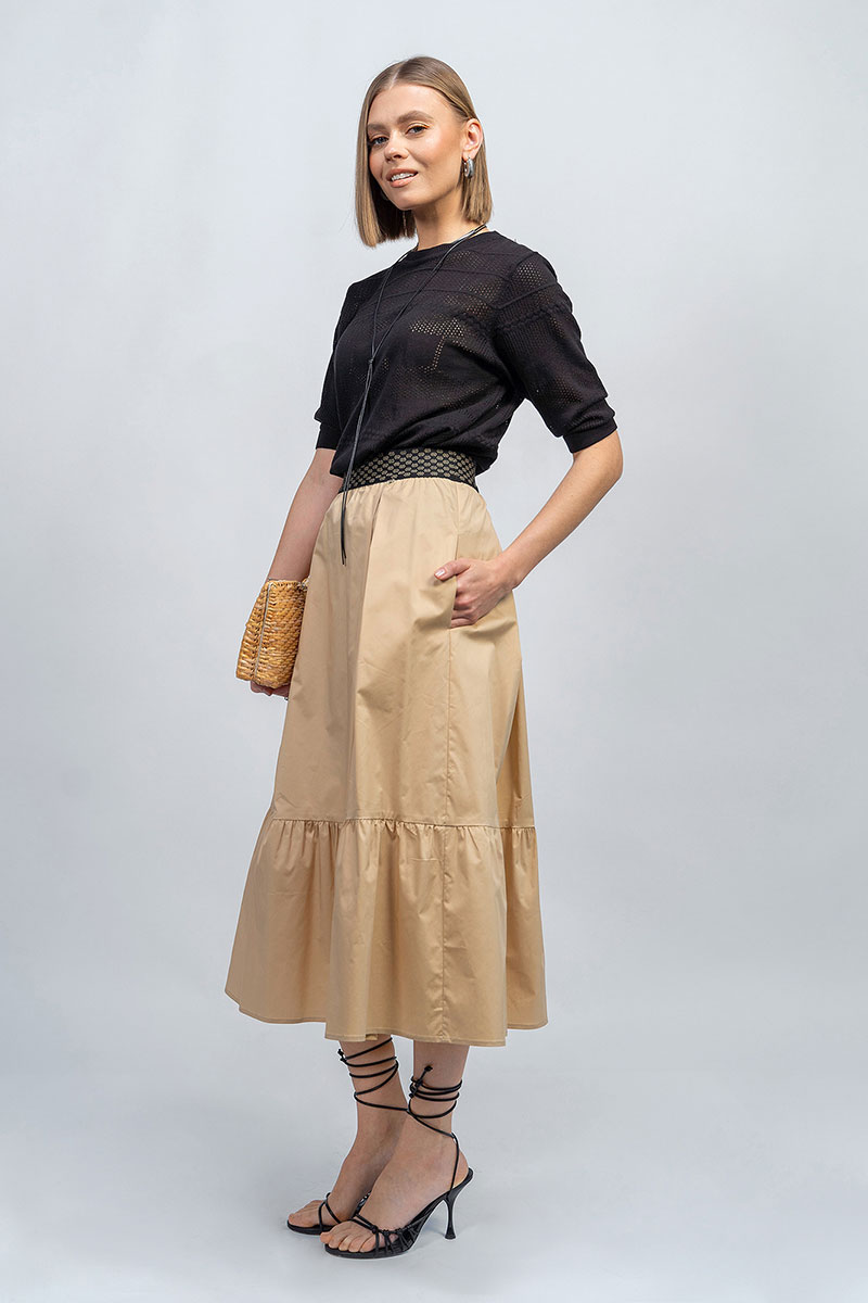 Лёгкий ажурный джемпер в комплекте с базовой юбкой на резинке.